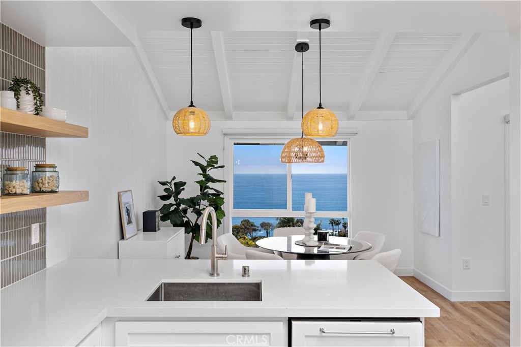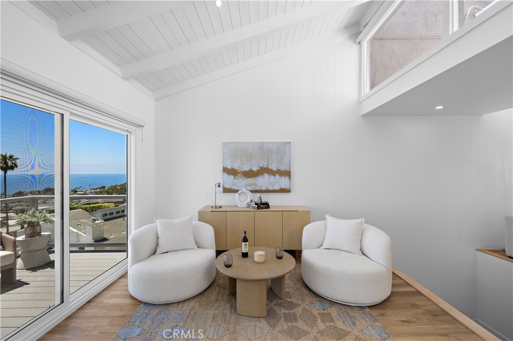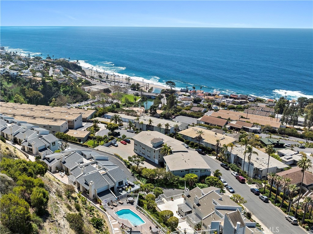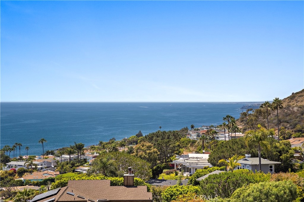 A luxurious coastal retreat perfectly capturing the elegance and stye of upscale beach living. Completely remodeled and offering stunning panoramic views of the ocean, Catalina Island, white water, rocks, and sand from every room—a full sensory experience with gorgeous sunsets and twinkling city lights. This spacious 2 bedroom, 3 bathroom condo has been thoughtfully reimagined with a blend of high-end finishes and comfortable design. The upper level welcomes you into a spacious light-filled living room with cathedral beamed ceilings, painted tongue and groove walls, a cozy gas fireplace finished with ceramic tile and a wood mantel, and warm wood-like vinyl floors. The open floor plan draws you past the living room to the captivating views, leading you to a cozy den that opens to a deck—ideal for relaxing, socializing, and enjoying the ocean breezes. The kitchen is a dream, featuring all-new stainless steel appliances, a six-burner stove, custom cabinetry and a breakfast bar that invites conversation. The deep green tile backsplash and open wood shelves add a touch of natural elegance, while the wine fridge and walk-in pantry ensure you're ready for any gathering. Adjacent to the kitchen, the dining room offers front-row views, creating the perfect setting to gather with family and friends. Glass handrails elegantly frame the stairs and decks, enhancing the open and light filled rooms. The lower level includes a primary suite with a private deck, a desk area with built-ins, a walk-in closet, a separate tub, walk-in shower, and dual sinks. The second bedroom offers a deck with views and a large closet. This level also includes a laundry room with new washer and dryer, a second bathroom with a walk-in shower, and a large storage closet. This highly-desired community features an elevator to all levels, including the parking garage, where you'll find a dedicated space and storage. Proximity to the elevator is also a big bonus for this condo. Enjoy the heated community pool, sun deck, outdoor shower, and bath facilities. Located just steps from the Montage Resort, beautiful beaches, popular Laguna restaurants, a shopping center, 2 large parks, Laguna Trolley stops and more!. Don't miss out on the opportunity to own a piece of luxurious Souther California living; properties in this sought-after community have sold quickly. Live the sophisticated beach life with a blend of style and serenity in this stunning coastal home.