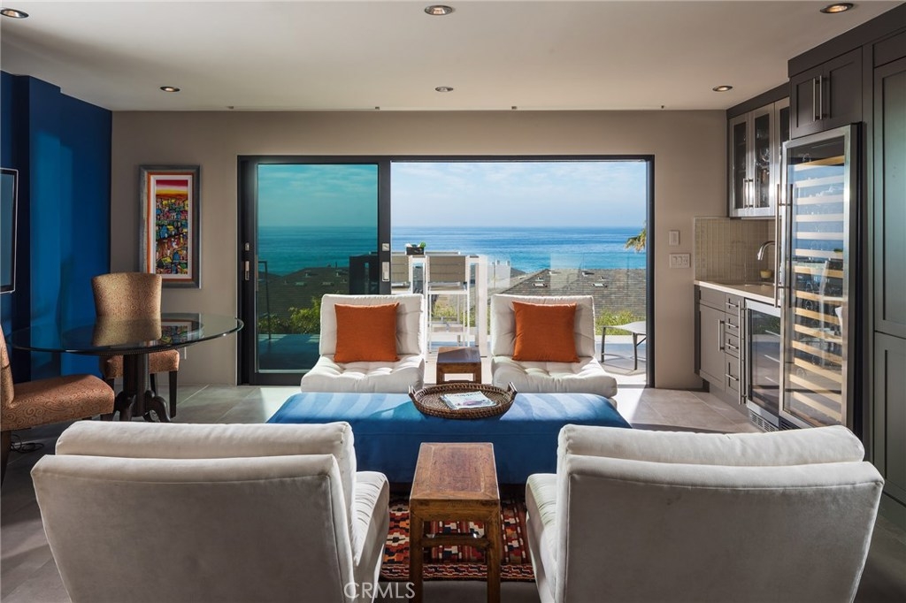 Located in the popular Blue Lagoon on Victoria Beach and adjacent to the world class Montage Resort lies 38 Blue Lagoon. Meticulously renovated from the studs out in 2016, the luxurious contemporary townhome hosts a myriad of style and accoutrements. Three level of living and all with an abundance of sliding glass looking out at the panoramic coastal views. Ingenuity exudes throughout the unit with transformative spaces whereby sliding partitions create living spaces from bedroom spaces, thus leaving every square inch creatively used. A lower level family room, equipped with bar and wine storage includes a built in Murphy bed and walks out to an expansive terrace with built in bbq. Entertain on the mid level with an open layout hosting a true chef's kitchen with the full spectrum of professional grade appliances, additional wine storage, eat up bar, informal dining space and a formal living room with sliding glass that brings the fresh ocean air in. Upstairs are two bedrooms suites partitioned by frosted glass panels; one the master with its tremendous ocean views and thoughtfully designed spa-like bathroom. The second, with an abundance of built in storage, makes for a great additional bedroom or study. Only the highest grade of finishes were selected for this transformation and it is a must see. Blue Lagoon living includes tennis, two heated community pools, communal spaces, guest parking and of course private beach access to Victoria Beach. Tremendous opportunity.