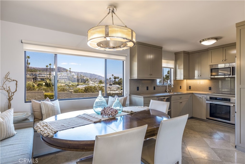 This is an extraordinary opportunity not often found on the Laguna Beach oceanfront. Situated in the very best view location within the private, gated and highly desirable Blue Lagoon community, this fully remodeled (and expanded) three-story townhouse offers approximately 2,000 square feet of living area with uninterrupted and panoramic views of the entire coastline of Laguna Beach and stretching beyond to Los Angeles. The ocean views begin with the crashing surf below and reach west all the way to Catalina Island – with spectacular sunsets to be seen throughout the year. The bright and open plan is highlighted by a full floor great room inclusive of the main living area, the dining area, a serving bar, and the open plan kitchen. The breathtaking ocean views from this floor are seen through an entire wall of floor to ceiling glass. The entry floor includes another entertaining room (which is the convertible third bedroom), which opens to a large seaside terrace through a wall of retractable glass doors. This room is served by another full bath and includes a laundry area. The top floor includes the serene master suite as well as the second bedroom suite. The master suite features vaulted ceilings and includes a spacious limestone clad bath with Waterworks fixtures and custom cabinetry. It shares the same dramatic upcoast views as the two other floors. The secondary suite is detailed in a similar manner and overlooks the Montage oceanfront park as well as the southern coastline. Blue Lagoon is the premier gated resort-style community in Laguna Beach and includes direct access to its private section of Victoria Beach. Its villas are prized and rarely offered for sale. To the south, it adjoins the renowned Montage Resort and Spa and three of Laguna Beach’s most picturesque coves. Blue Lagoon includes parks, gardens, pools, a clubhouse area, and is conveniently located near to the central part of this revered coastal community with its charming shops and fine dining. This property is being offered for the very first time, as it has remained in the original family for over five decades. People often wait years to acquire a home here – especially in this elevated oceanfront bluff location considered to be the best in the community. After one look at the views, the setting, the beaches, and of course at this home, one will know how truly special it is.
