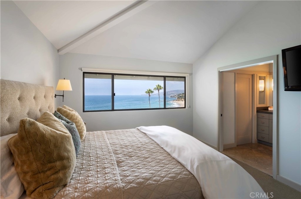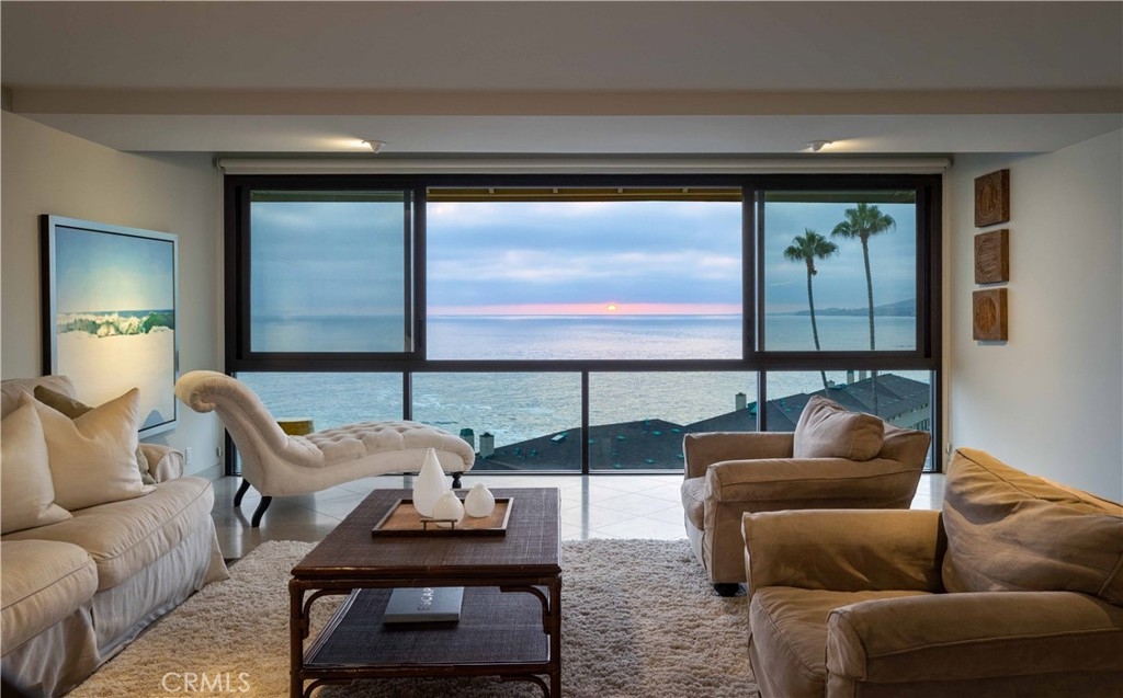 This is an extraordinary opportunity not often found on the Laguna Beach oceanfront. Situated in the very best view location within the private, gated and highly desirable Blue Lagoon community, this fully remodeled (and expanded) three-story townhouse offers approximately 2,000 square feet of living area with uninterrupted and panoramic views of the entire coastline of Laguna Beach and stretching beyond to Los Angeles. The ocean views begin with the crashing surf below and reach west all the way to Catalina Island – with spectacular sunsets to be seen throughout the year. The bright and open plan is highlighted by a full floor great room inclusive of the main living area, the dining area, a serving bar, and the open plan kitchen. The breathtaking ocean views from this floor are seen through an entire wall of floor to ceiling glass. The entry floor includes another entertaining room (which is the convertible third bedroom), which opens to a large seaside terrace through a wall of retractable glass doors. This room is served by another full bath and includes a laundry area. The top floor includes the serene master suite as well as the second bedroom suite. The master suite features vaulted ceilings and includes a spacious limestone clad bath with Waterworks fixtures and custom cabinetry. It shares the same dramatic upcoast views as the two other floors. The secondary suite is detailed in a similar manner and overlooks the Montage oceanfront park as well as the southern coastline. Blue Lagoon is the premier gated resort-style community in Laguna Beach and includes direct access to its private section of Victoria Beach. Its villas are prized and rarely offered for sale. To the south, it adjoins the renowned Montage Resort and Spa and three of Laguna Beach’s most picturesque coves. Blue Lagoon includes parks, gardens, pools, a clubhouse area, and is conveniently located near to the central part of this revered coastal community with its charming shops and fine dining. This property is being offered for the very first time, as it has remained in the original family for over five decades. People often wait years to acquire a home here – especially in this elevated oceanfront bluff location considered to be the best in the community. After one look at the views, the setting, the beaches, and of course at this home, one will know how truly special it is.