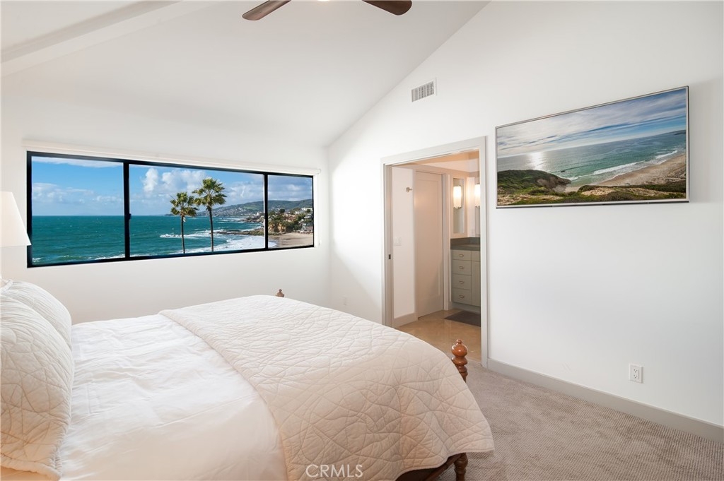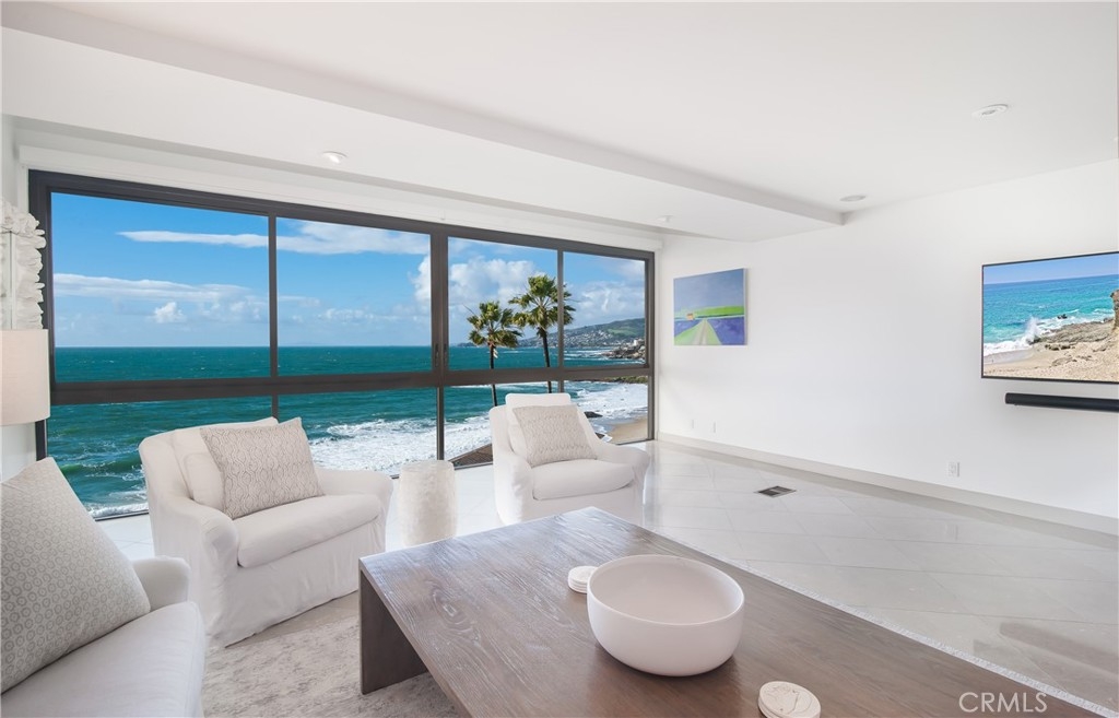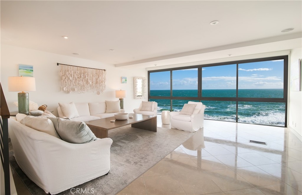Oceanside private community of Blue Lagoon Villas overlooking one of Laguna Beach's best beaches next door to the Montage and access to Victoria Beach! This property is considered the most desirable location in the community, offering both North and South coastline whitewater views, Catalina Island along with picturesque hills and city night light views! Relax with the crashing sound of the surf and the occasional surprise of whales and dolphin swimming by. Experience the most colorful and magnificent sunsets. Resort living at it's best! Offers expanded floor plan with open lower level with full bathroom, could be used as den/3rd bedroom, and great patio. Spacious living room with spectacular whitewater views opening to dining area and kitchen with upgrades. Light & bright upper level primary bedroom suite with upgraded bathroom, ocean views, walk-in closet. Secondary bedroom suite and bath with views of ocean, hills and Montage. Blue Lagoon community amenities include 2- year round heated swimming pools, tennis/pickleball court, fitness center, outdoor kitchen & cabana in upper community center. Close proximity to restaurants, Montage Spa & Resort, The Ranch, and golf.