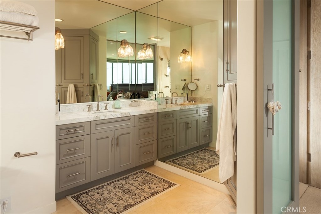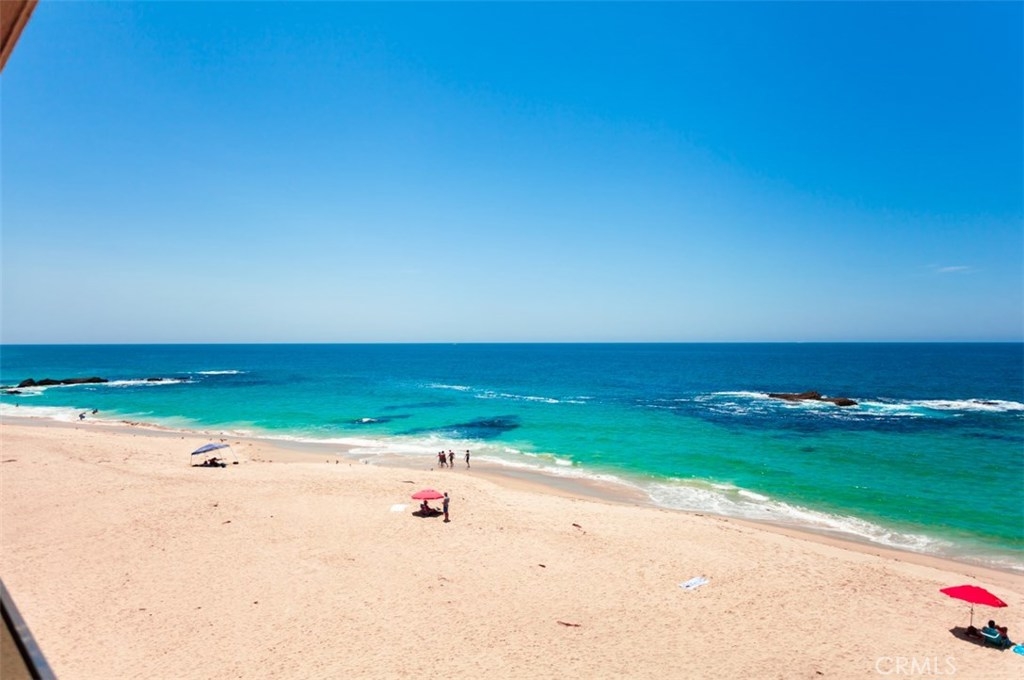 Chic, airy and virtually carefree, this completely remodeled oceanfront condo in Laguna Beach offers incomparable views. The only thing between you and the ocean is the fresh sea breeze, as the luxe residence is located directly above the beach at the sought-after Laguna Lido on Totuava Cove. Relax or dine on the spacious deck and take in vistas of Catalina, sunsets, towering bluffs, surfers on the sand just beneath you, and waves breaking over dramatic rock formations. Floor-to-ceiling slide-away doors welcome views into the main living area of the home, which encompasses an open living room, dining room and kitchen in one inviting space. A large island with custom wood top anchors the kitchen area, where meal prep and socializing are complemented by pendant lighting, custom cabinetry, tile flooring, stone countertops, full backsplash, a pantry, Sub-Zero refrigerator and a Bosch microwave and range. Two ensuite baths are featured in the one-level design of approx. 1,028 s.f. Both display built-in cabinetry and entertainment centers, and the ocean-view master suite reveals a bath with marble countertop, multi-head shower and contemporary sliding barn doors. Recessed lighting, mirrored walls, Lutron lighting and designer carpet accentuate select rooms, and an enclosed 1-car garage is included. Laguna Lido offers a preferred lifestyle that is enhanced with an ocean-view resort pool, private gym, sauna, security, a game room, and direct access to the secluded beach.