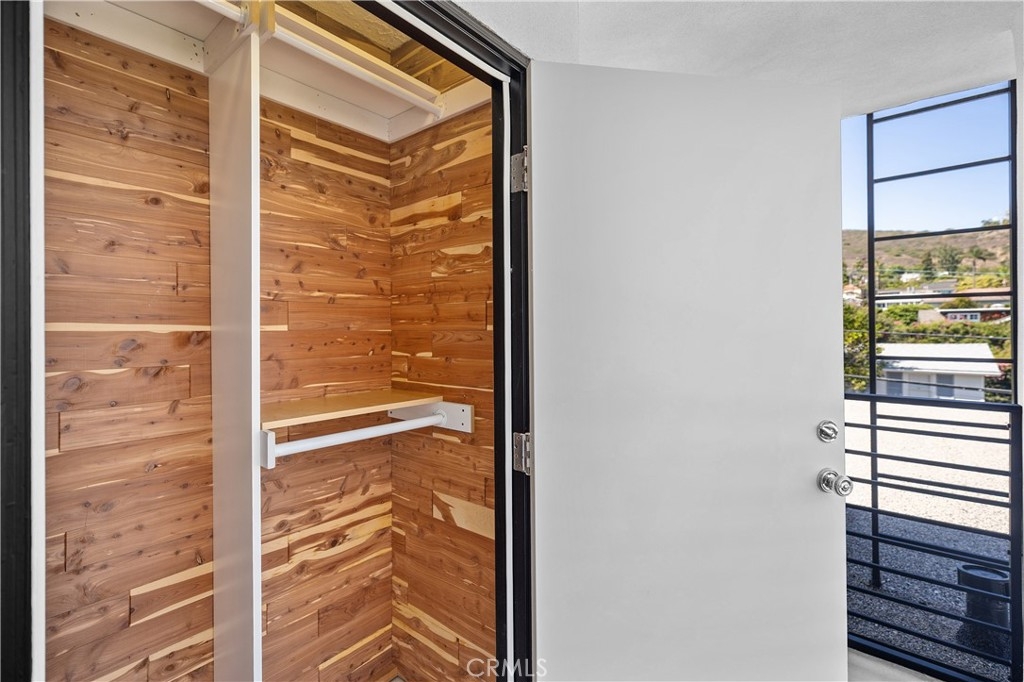 Vast, unobstructed, panoramic, ocean and hills views...including Catalina Island, the Dana Point Headlands, and the tree covered Laguna Beach hills. Additionally, there are virtually no privacy issues because of the neighboring buildings are lower in height. The large windows offer privacy and ventilation. Some of the condo's interior walls have been modified to create a wonderful "great room." Enjoy the light hardwood floors throughout; oversized gas fireplace; ventilation skylights in the two bathrooms; multiple cedar-lined closets; your private in-unit washer and dryer; and two outdoor balconies. Plus, a welcoming work from home environment that features a built in desk and filing cabinets. This penthouse condo has a single car garage and a separate lockable storage room. You will be living on the top floor of this recently renovated three story condo building. Please schedule your private showing today and experience this wonderful home for yourself.