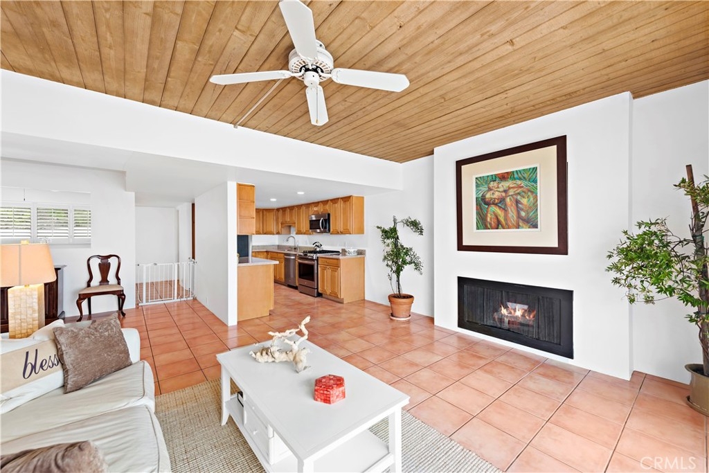 Location! Location! Location! Beautiful townhouse above the Montage Hotel, so close to the waves that you will be lulled to sleep. Oceanview from Living room, kitchen, den, and dining room. The natural wood ceiling in the living room and cozy fireplace enhance the coastal feel. The house boasts a 2-car garage and has a 186 sq. ft. storage room. Both bedrooms have en-suites. A convenient powder room is off of the main living area. The kitchen has quartz countertops, custom cabinets, gas appliances, and includes a refrigerator. Relax on the balcony. This home is near shops, restaurants, art galleries, and all the amenities that Laguna Beach has to offer. The community is gated and includes a pool/spa overlooking the ocean, dog park, clubhouse with garden to host your parties, and guest parking. The washer/dryer closet is conveniently located by the bedrooms. These large homes rarely come on the market. They are spacious, bright, and a must-see. Owner to credit buyer $3,000.00 at closing for a new heater.