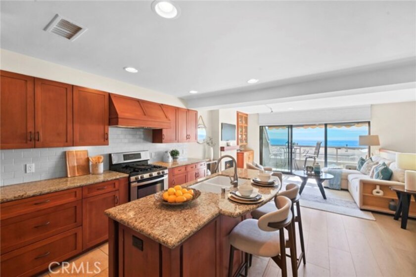Remodeled with the highest quality of designer amenities, this elegant town home is located in the gated community of Laguna Ocean Vista. This spacious town home has an open floor plan which includes an open kitchen w/ a large center island, granite countertops, stainless steel appliances, including refrigerator & beautiful custom cabinets that open into the living room w/a fireplace and a built-in bookcase. Additionally, there is a wall of windows and sliding glass doors that lead out to an outside OCEAN VIEW deck. The formal dining area is open to the kitchen, which lends itself to easy entertaining. On the same level is an office or 3rd bedroom with a full bath, that also serves as a powder room. The large master suite includes brand new carpeting, a sitting area and a great walk-in closet. The master bathroom has newer cabinets, newer granite countertops, designer sink & a granite tiled shower over the tub. The second master suite also has brand new carpet, a walk-in closet & a private bath w/a shower/tub combo, plus hillside views! The attached 2-car garage w/direct access has a large storage area or can be an office, craft room or exercise room, and washer/dryer hookups. There is also a formal entry on the mid-level of the unit and most windows are newer with dual panes. In addition to all this, there is a community pool & clubhouse, the pool is located in a serene location right at the canyon's edge with views of Aliso Beach. The location is on the hill just above the world-famous Montage Resort, the shopping center & numerous restaurants, there are amazing views!!