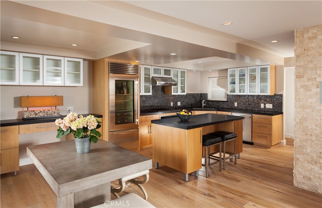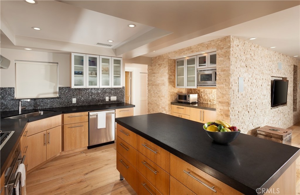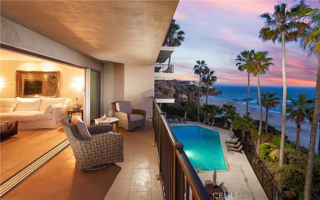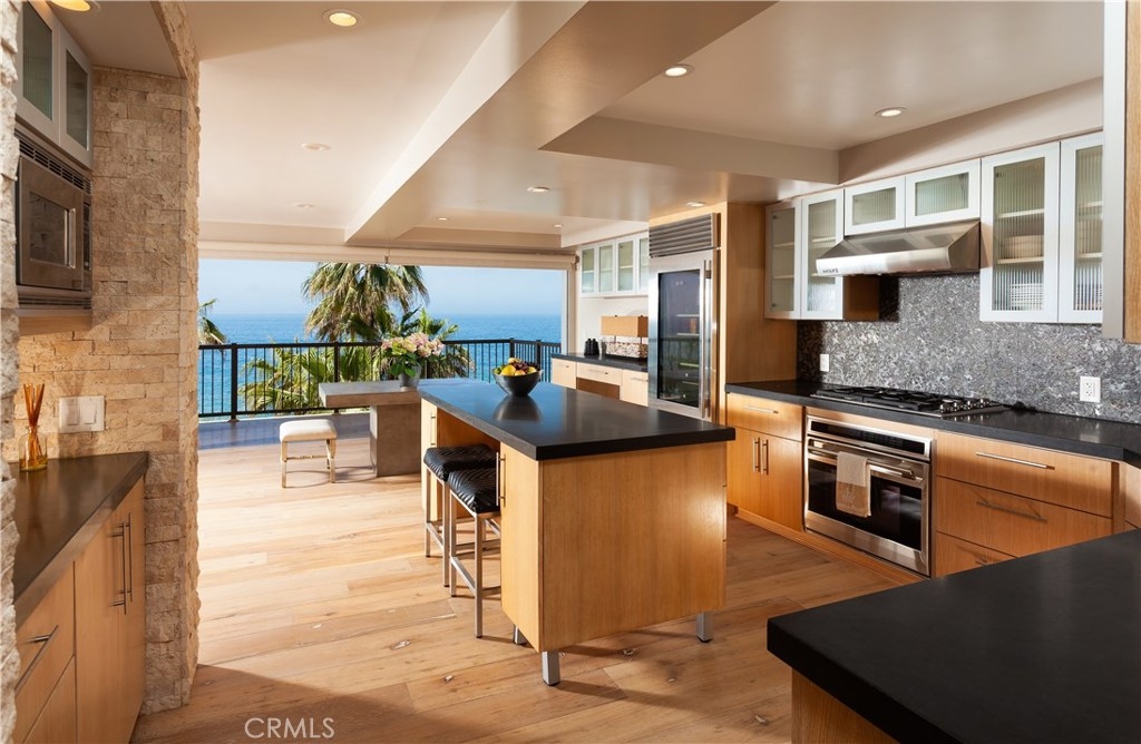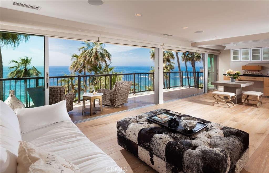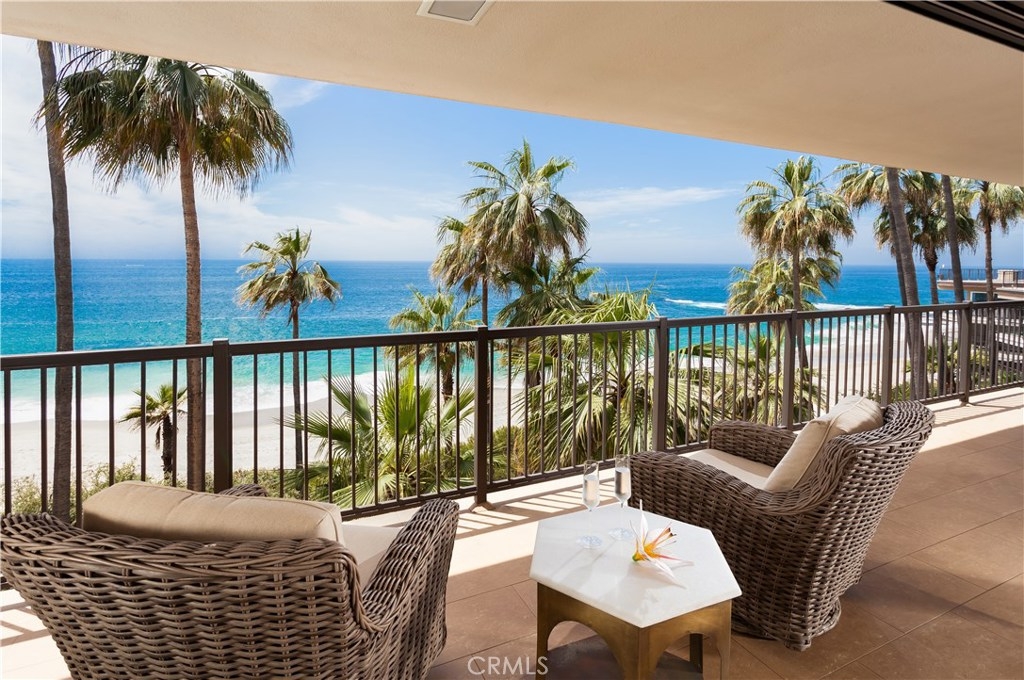 Beachfront Condo with Coveted Location! Renovated with a focus on aesthetics and quality, this home offers a luxurious interior and a sought-after location in a guard gated community with numerous amenities. Located on the front on the main floor, the home provides easy access to the beach, community pool/spa, exercise room and private, subterranean parking garage. Completely remodeled in 2011, the home features white oak floors and cabinets, heated tile floors in the bathrooms, and integrated surround sound. A wall of sliding glass doors opens to the reconstructed view deck, providing the ultimate in indoor/outdoor living. The kitchen showcases the quality and style found throughout the home. It features a rare granite backsplash, Wolf appliances, and a SubZero fridge. In the main living areas, endless ocean views are complemented by natural sea stone walls with custom accent lighting, creating spa-like tranquility. The natural stone continues in the master bath, which has concrete counters, a walk-in shower, and a secret door that reveals the ocean view. Completely turnkey and meticulously re-imagined, the home offers a full size washer/dryer, custom closets, a tankless water heater, remote-controlled blinds, all new plumbing, and elegant custom light fixtures. With numerous upgrades and a serene, private setting in a resort-like community with mature palm trees, this oceanfront condo makes every day feel like a vacation. Don’t miss out!
