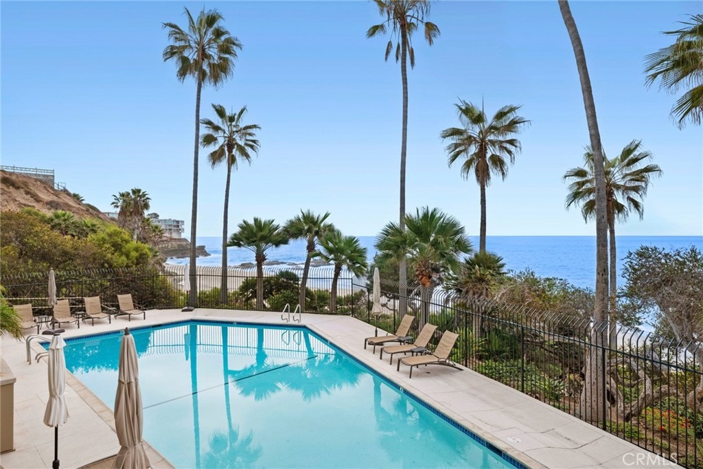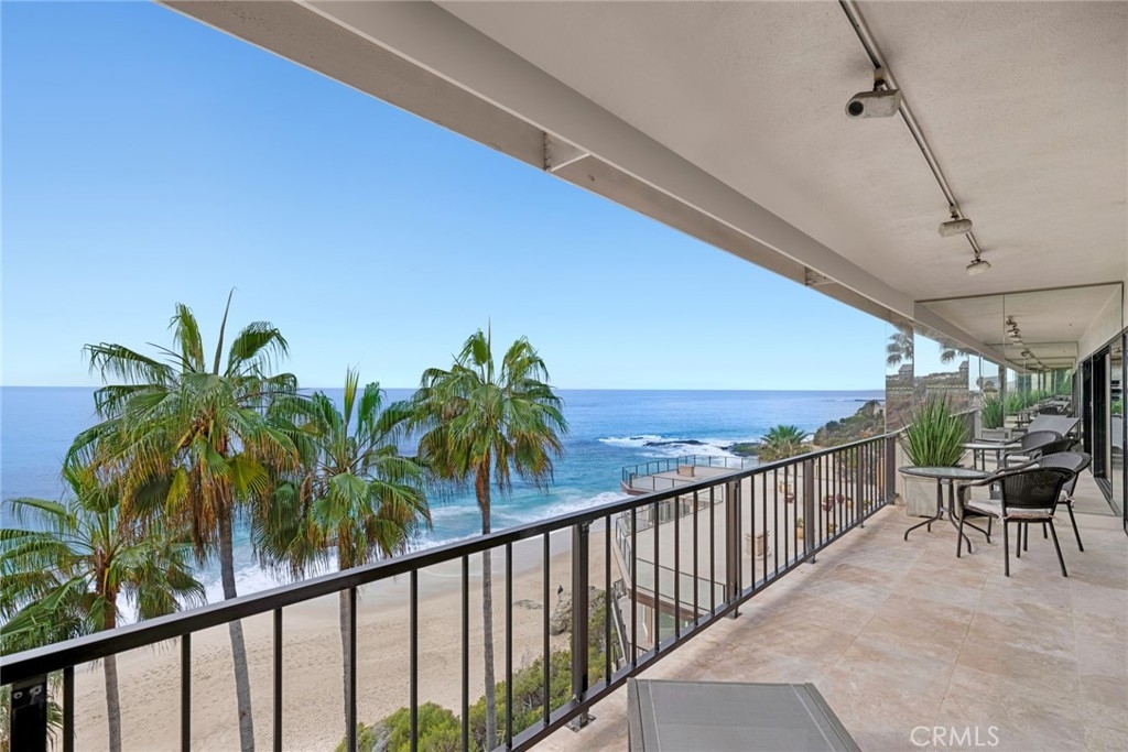 Immerse yourself in the ultimate coastal lifestyle at this exclusive Laguna Royale residence, where every day feels like a resort experience. Perched above the iconic West Street Beach, this 2-bedroom, 2-bathroom, approximately 1,150 square foot home offers unparalleled panoramic views of the Pacific Ocean, Catalina Island, white water, and mesmerizing sunsets. Designed for seamless indoor-outdoor living, the thoughtfully planned layout flows effortlessly onto a private oceanfront deck, perfect for enjoying the soothing sounds of the waves and the ever-changing beauty of the coastline. Laguna Royale offers 24/7 guarded access and an array of resort-style amenities, including a heated oceanfront pool and spa, a fitness center, lush tropical gardens, and two expansive decks with fire pit seating—all overlooking the pristine shoreline. Enjoy the convenience of an on-site property manager and one assigned parking space. Private elevators connect you effortlessly to every corner of the property, including direct beach access. Located near the Montage Resort and Spa, this extraordinary Laguna Beach home is surrounded by world-class dining, charming boutiques, and vibrant art galleries. Whether exploring local attractions, playing a round of golf at The Ranch, or relaxing at home with twinkling coastal lights as your backdrop, this property promises a lifestyle of unmatched tranquility. Conveniently located near John Wayne Airport, this residence makes your dream vacation a reality every day.