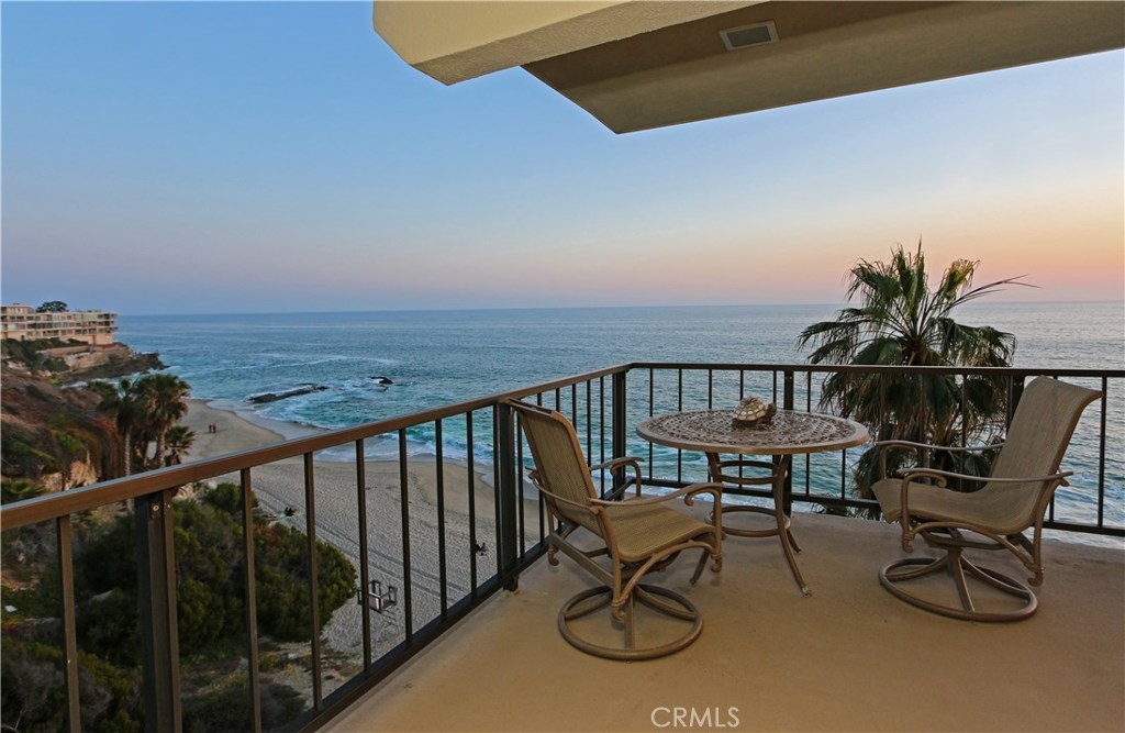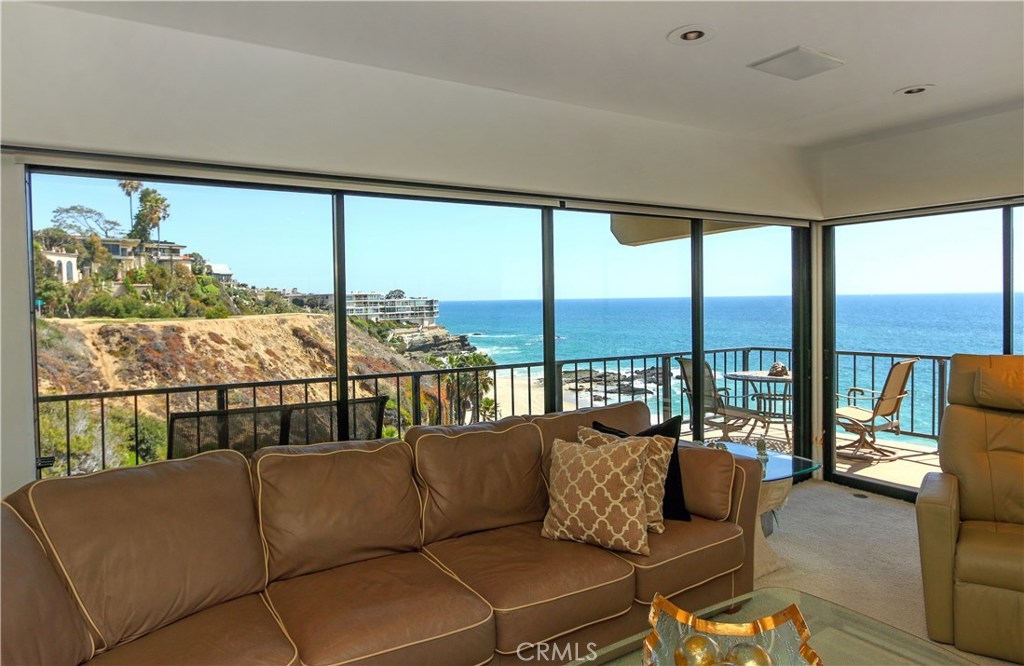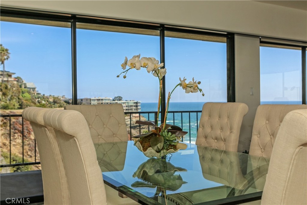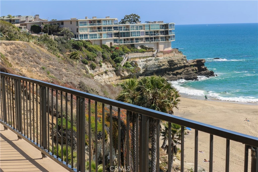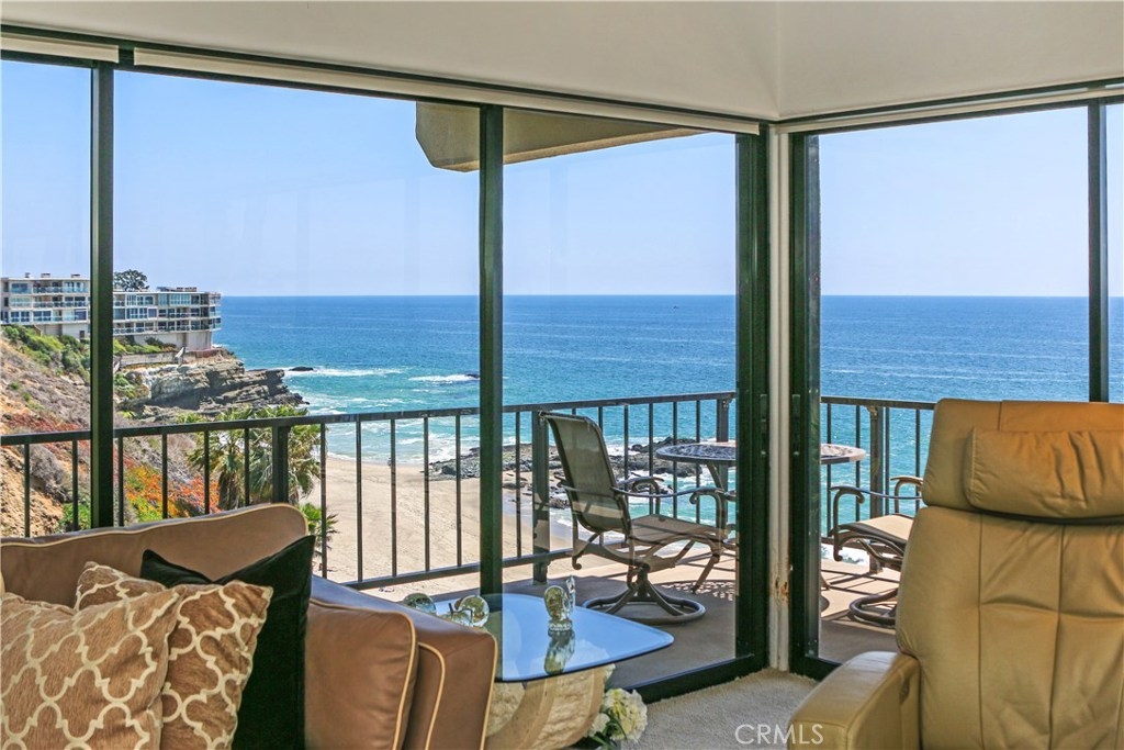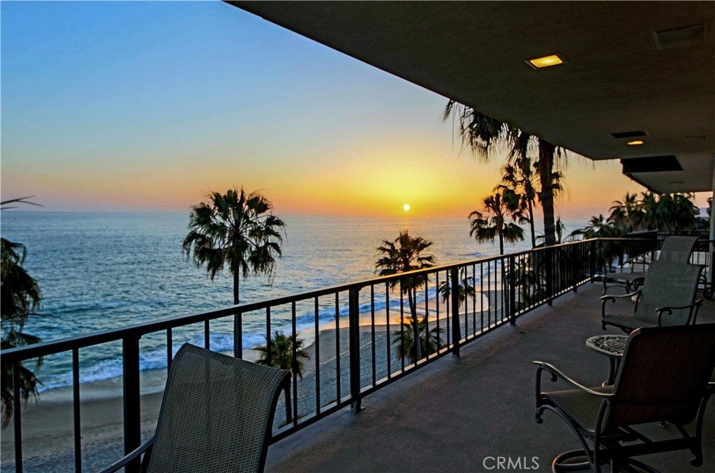 "Laguna Royale" is truly a unique coastal community. The moment you step into this unique, professionally designed condo, you'll feel like you're on one of the world's finest cruise ships. The stunning panoramic view will mesmerize and captivate you as will many of nature's sights and sounds including the pelicans and seagulls gliding over the pristine sandy beach below, the occasional whale sightings, the ocean waves crashing on rocks, the calm and serenity of the early morning sunrise and the indescribable beauty of the sun setting over the Pacific ocean's horizon. This rarely available bright and spacious corner unit in this prestigious and sophisticated building is ready to welcome you. This home invites comfort and exudes modern elegance with a large wraparound balcony, and unobstructed views directly out to the ocean on two sides, not only from the balcony but from well within the living/dining area, kitchen and huge master suite. With generous living space and stylish finishes, you'll enjoy a perfect setting for relaxing and entertaining. Round the clock security enhances your privacy and safety as does the convenience of elevator access to the heated pool, gym/exercise room, in-ground spa all steps away from the beach. A private spacious storage facility is within a few feet of the front door and two reserved parking spaces are feet away from the guard house and elevators. Grocery stores, restaurants, hotels, entertainment and healthcare are all within easy reach.