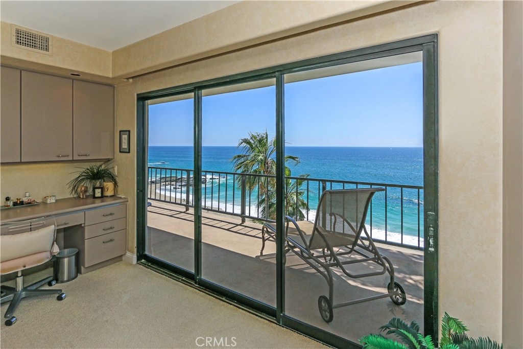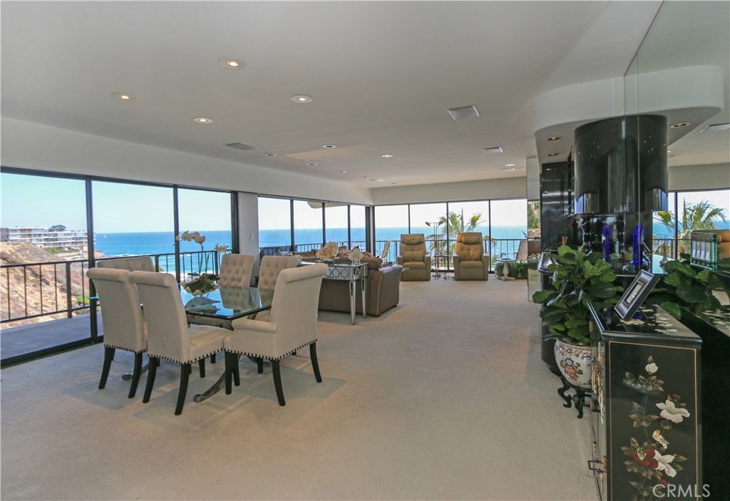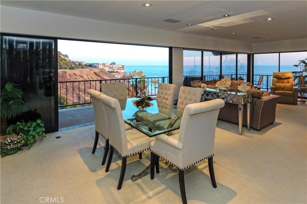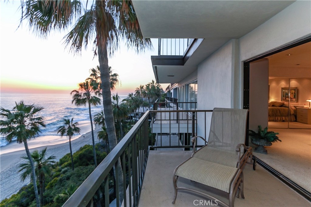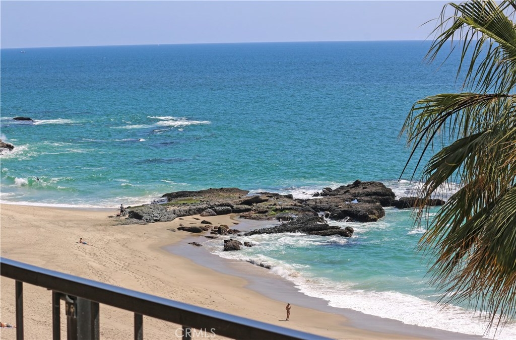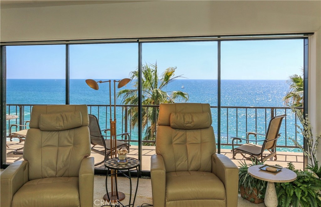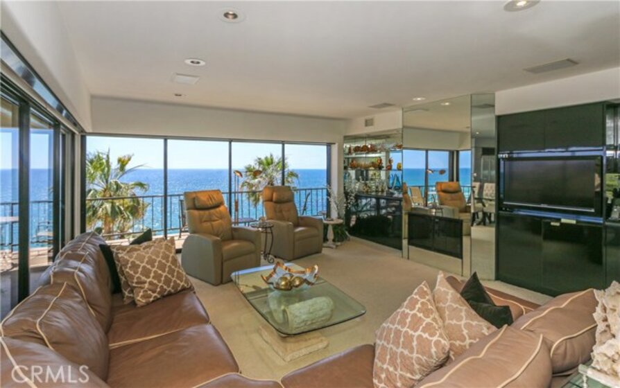 "Laguna Royale" is truly a unique coastal community. The moment you step into this unique, professionally designed condo, you'll feel like you're on one of the world's finest cruise ships. The stunning panoramic view will mesmerize and captivate you as will many of nature's sights and sounds including the pelicans and seagulls gliding over the pristine sandy beach below, the occasional whale sightings, the ocean waves crashing on rocks, the calm and serenity of the early morning sunrise and the indescribable beauty of the sun setting over the Pacific ocean's horizon. This rarely available bright and spacious corner unit in this prestigious and sophisticated building is ready to welcome you. This home invites comfort and exudes modern elegance with a large wraparound balcony, and unobstructed views directly out to the ocean on two sides, not only from the balcony but from well within the living/dining area, kitchen and huge master suite. With generous living space and stylish finishes, you'll enjoy a perfect setting for relaxing and entertaining. Round the clock security enhances your privacy and safety as does the convenience of elevator access to the heated pool, gym/exercise room, in-ground spa all steps away from the beach. A private spacious storage facility is within a few feet of the front door and two reserved parking spaces are feet away from the guard house and elevators. Grocery stores, restaurants, hotels, entertainment and healthcare are all within easy reach.