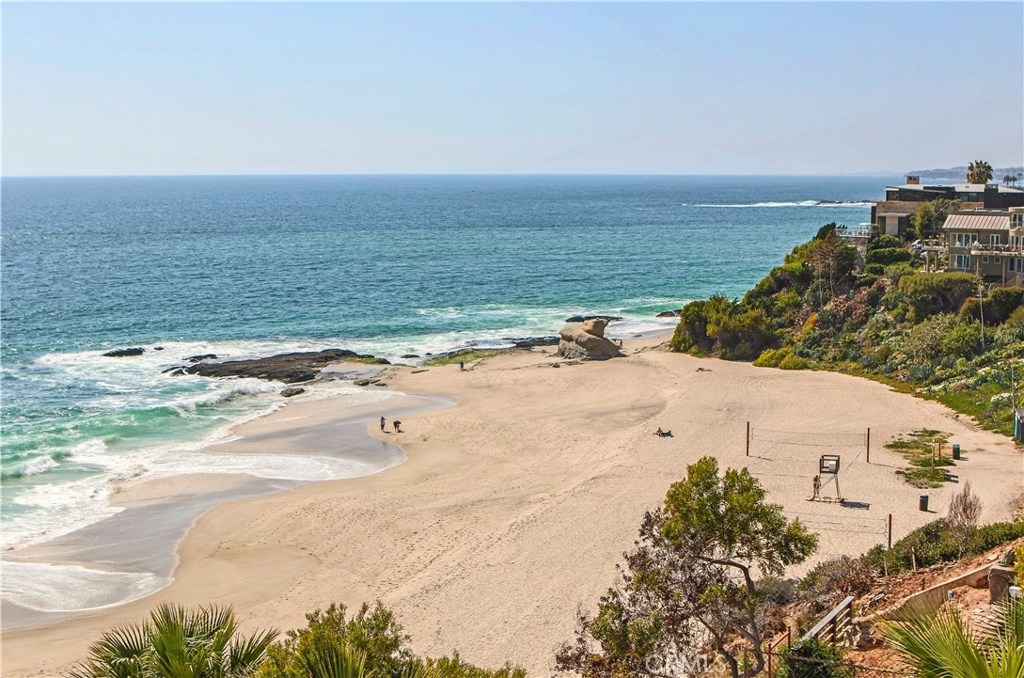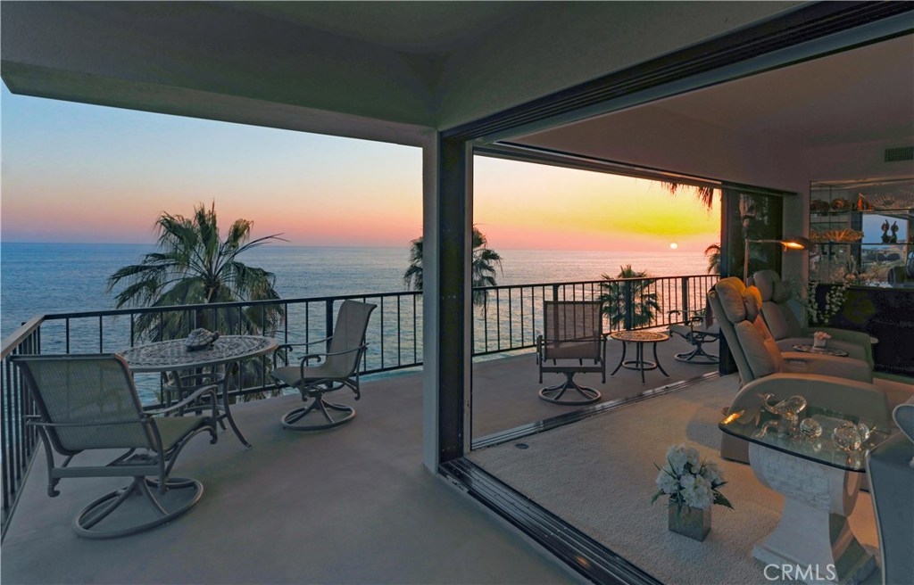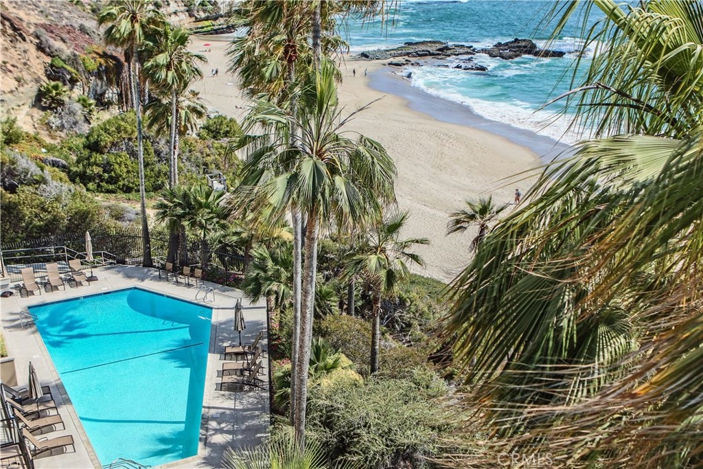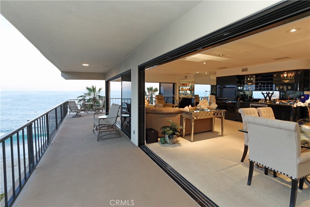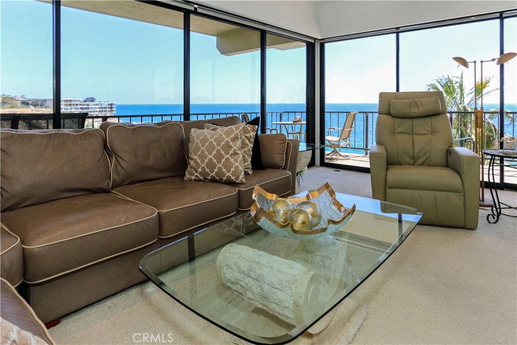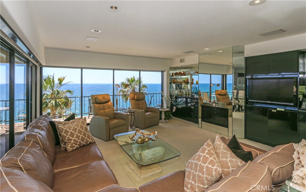 "Laguna Royale" is truly a unique coastal community. The moment you step into this unique, professionally designed condo, you'll feel like you're on one of the world's finest cruise ships. The stunning panoramic view will mesmerize and captivate you as will many of nature's sights and sounds including the pelicans and seagulls gliding over the pristine sandy beach below, the occasional whale sightings, the ocean waves crashing on rocks, the calm and serenity of the early morning sunrise and the indescribable beauty of the sun setting over the Pacific ocean's horizon. This rarely available bright and spacious corner unit in this prestigious and sophisticated building is ready to welcome you. This home invites comfort and exudes modern elegance with a large wraparound balcony, and unobstructed views directly out to the ocean on two sides, not only from the balcony but from well within the living/dining area, kitchen and huge master suite. With generous living space and stylish finishes, you'll enjoy a perfect setting for relaxing and entertaining. Round the clock security enhances your privacy and safety as does the convenience of elevator access to the heated pool, gym/exercise room, in-ground spa all steps away from the beach. A private spacious storage facility is within a few feet of the front door and two reserved parking spaces are feet away from the guard house and elevators. Grocery stores, restaurants, hotels, entertainment and healthcare are all within easy reach.