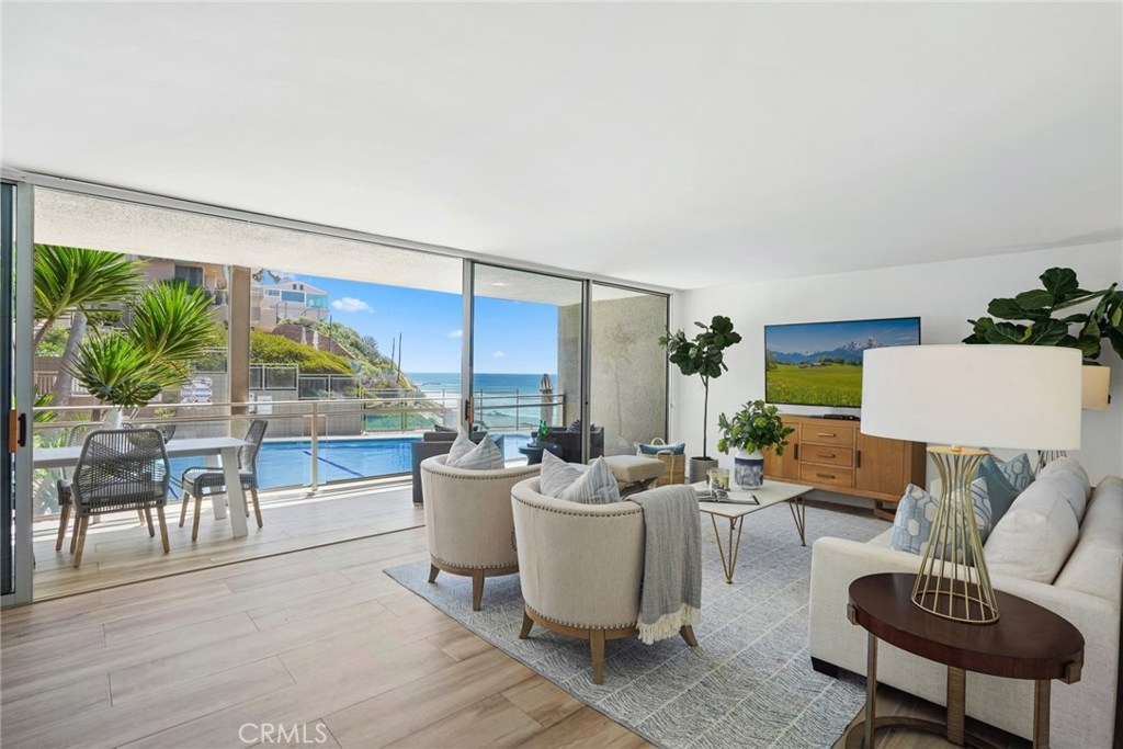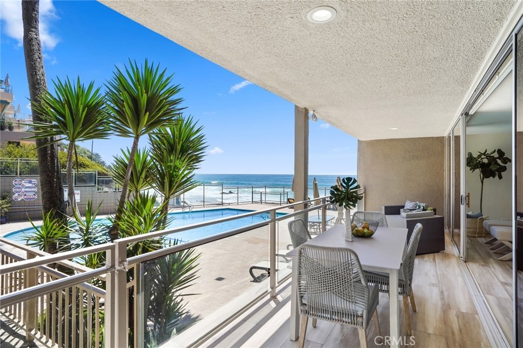 Seaside Living with Direct Access to the Sand, Ocean, and Swimming Pool from the Private Balcony! Escape to Luxury— Experience Modern Coastal Sophistication in Southern California’s “Hot Spot” Destination Laguna Beach, California. Our Oceanfront “Laguna Sands” Residence is situated directly next to the renowned Surf & Sands Resort and across from Selanne Steak Tavern & Mozambique Restaurant! The home is just minutes from Downtown Laguna Beach and offers 2BD 2BA, Panoramic (Sand, White Water, Pool) Views, Private Deck, and 1,155 Sq Ft of unmatched decadent indulgence! The Beachfront Getaway offers the Finest Interior Elements including Italian Flooring, White Shaker Door Glass-Fronted Cabinetry, and Recessed Lighting! Chef-Inspired Gourmet Kitchen with Quartz Countertops, Custom Grey Ceramic Tile Backsplash, Glass Fronted Cabinetry, and ALL Stainless Steel Appliances! Indoor/Outdoor Living at its Best—Your Private Deck has direct access to the Pool & Beach, plus Laguna Sands offers an Oversized Rooftop Deck for Entertaining! Laguna Sands Amenities exclusive to residents—Covered Reserved Parking, Controlled Access to Building, & Expansive Rooftop Deck for Entertaining! Just minutes from Pageant of the Arts, Saw Dust Art Festival, Carmelita’s, Dining Destinations on Forest Avenue, Skyloft, and The Montage.