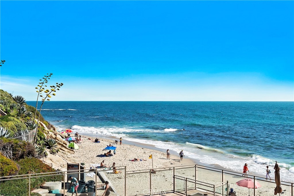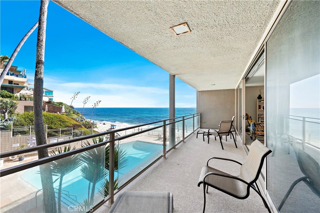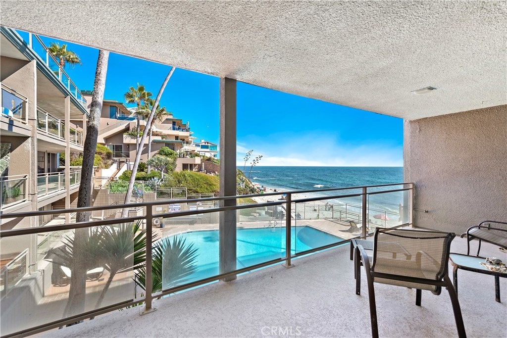 OCEAN FRONT / BEACH FRONT with SAND AND WHITE WATER OCEAN VIEWS STRAIGHT ON OCEAN VIEW~ Two Garage spots! Walls of glass open to the terrace where you can relax and take in the amazing view! Centrally located next to the Surf and Sand Hotel in the highly sought after gated community of Laguna Sands, this light and bright condo is the perfect getaway at the beach! Enjoy the amenities of the oceanfront heated pool, direct beach access and two community decks. The sounds of the ocean can be experienced from throughout the unit and your bed! This unit has gated parking in the subterranean parking garage with two assigned parking space. The unit has indoor laundry! Property has elevator~ Walking distance to various restaurants, shops and galleries. Enjoy beach front living at it's best in the heart of Laguna Beach!