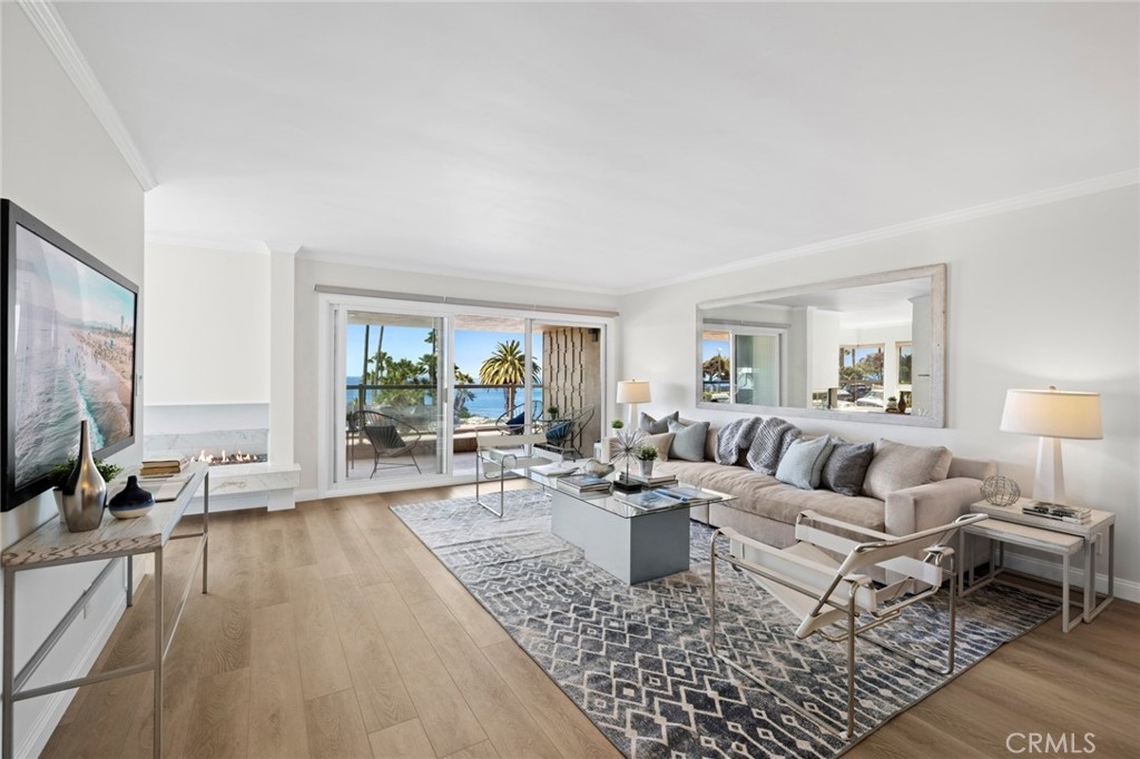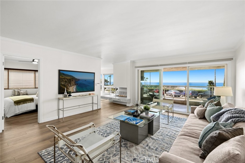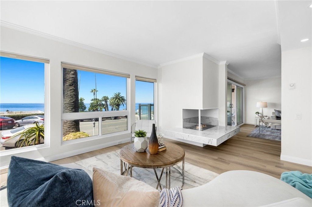 Graced with fabulous ocean, Catalina Island, sunset and coastline views, this perfectly appointed one-level condo on a coveted corner lot is settled directly across the street from the ocean and Heisler Park in desirable North Laguna Beach. Wide frontage and large upgraded windows bring sweeping ocean views and natural light into the floorplan, where two bedrooms and two baths are revealed in approximately 1,302 square feet. A spacious covered ocean-view deck complements indoor/outdoor entertaining that friends and loved ones are sure to look forward to. Stylish wide-plank flooring enhances the upscale vibe of the residence, which perfect as a second home or main residence. Relax in a living room that boasts a fireplace with wraparound floating hearth, and a mitered-glass corner window for beautiful ocean views. Step out on the deck directly from a family room that flows to a spacious dining room, where everyone will enjoy sharing memorable meals together. The kitchen offers balcony access, white cabinetry, granite countertops with full backsplash, and a suite of stainless steel appliances. Residents of the classic building, which features period-perfect breezeblock and an elevator, have exclusive access to gated underground parking with two dedicated spots. Leave the car parked and explore Heisler Park, Diver’s Cove and Main Beach, and enjoy lawn bowling in the park and easy access to galleries, restaurants and shopping. Act today and enjoy the best coastal lifestyle that Laguna Beach has to offer.