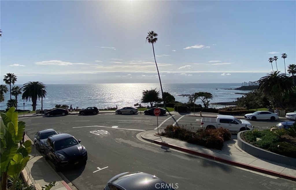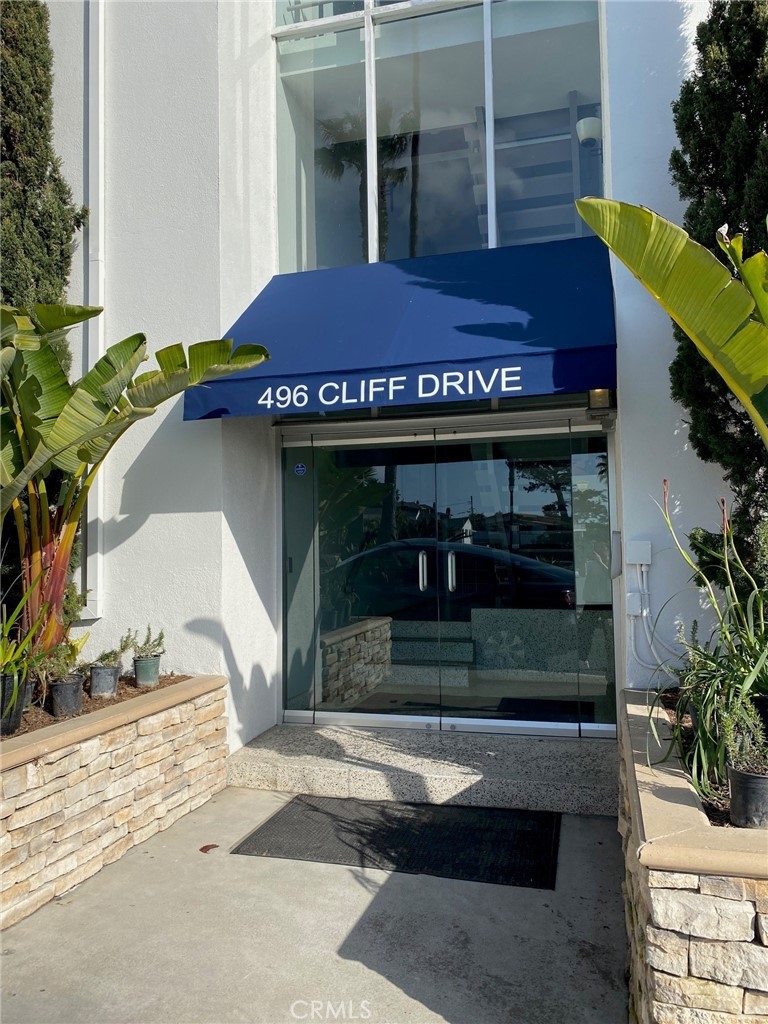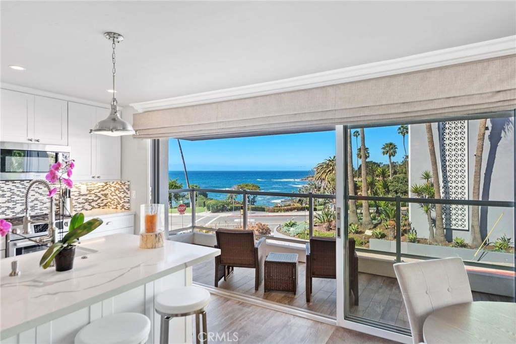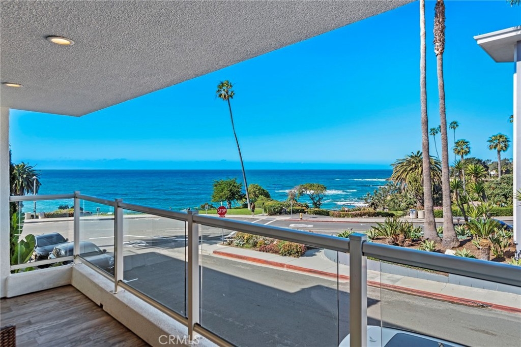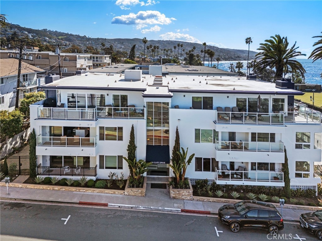 Your Ocean Front Pied-A-Terre awaits in vibrant North Laguna. Incredible vistas of the coastline, white water and Catalina Island including stunning sunsets. Beautiful modern remodeling throughout for a truly turnkey living experience. Great room concept living, dining and kitchen with La Cantina sliding doors to a dedicated ocean view deck. Quartz kitchen with stainless steel appliances and large island with bar seating. A center piece of the great room is a brick gas burning fireplace with stone hearth. This end unit has a private feel, accentuated by side windows looking out to greenery landscape. The bedroom suite looks out to the ocean, offers wall-to-wall closet storage and an en suite modern bathroom. A second full bathroom and an individual washer/dryer in unit provide added conveniences. A desirable area on the north end, providing a wonderful setting to view 4th of July fireworks or in any season, park in your dedicated garage spot and explore town. Experience the evening moon light over the water and soothing sounds of waves. Corner lot location at Cliff & Myrtle, also known as 496 Cliff Drive, a building of only 10 condominiums with a newly painted exterior. Secure front building entry and gated parking with assigned parking and storage. Community elevator to all levels allows ease of every day living. Fine dining, art galleries, shops and the most scenic cove beaches await you within yards from your new Laguna Beach residence.