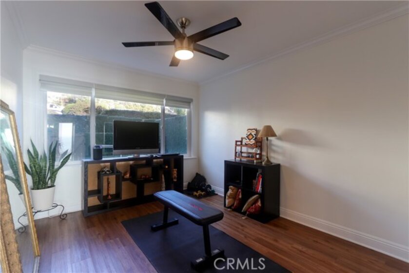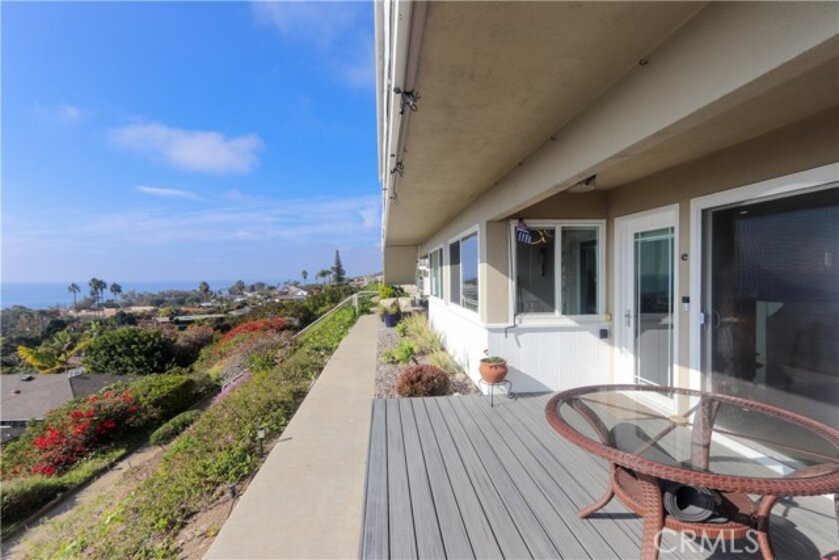 View, View, View! Located directly across from the Montage Resort, this single-level, 2-bedroom, 1-bath condominium offers ocean views from the kitchen, dining area, and living room. The open floor plan features large windows that provide natural light and highlight the surrounding coastal setting. Interior features include updated flooring, granite countertops, custom cabinetry, and remote-controlled window shades. The unit includes a private front porch with ocean-facing seating space, as well as a separate rear patio offering additional outdoor area. The floor plan consists of two bedrooms and one full bathroom. Community amenities include landscaped common areas, a swimming pool, and a clubhouse. The property also includes a detached one-car garage. Conveniently located near beaches, coastal walking paths, restaurants, and local amenities, this property presents an opportunity for coastal living in Laguna Beach.