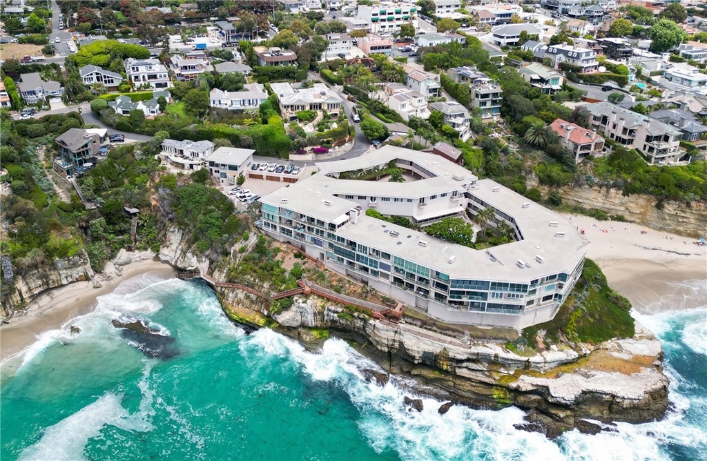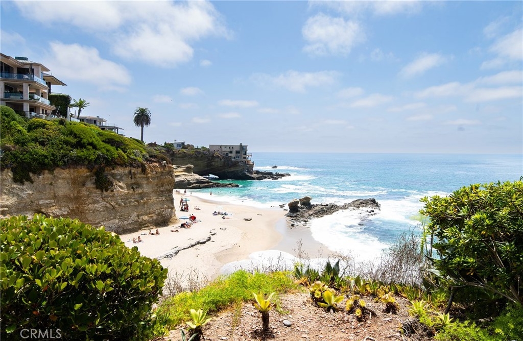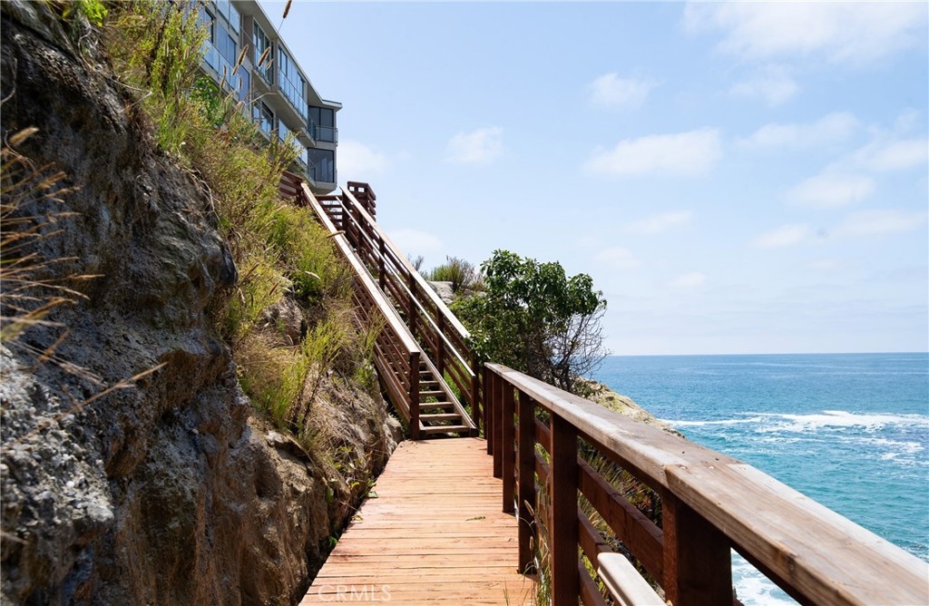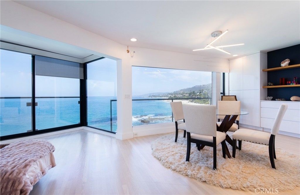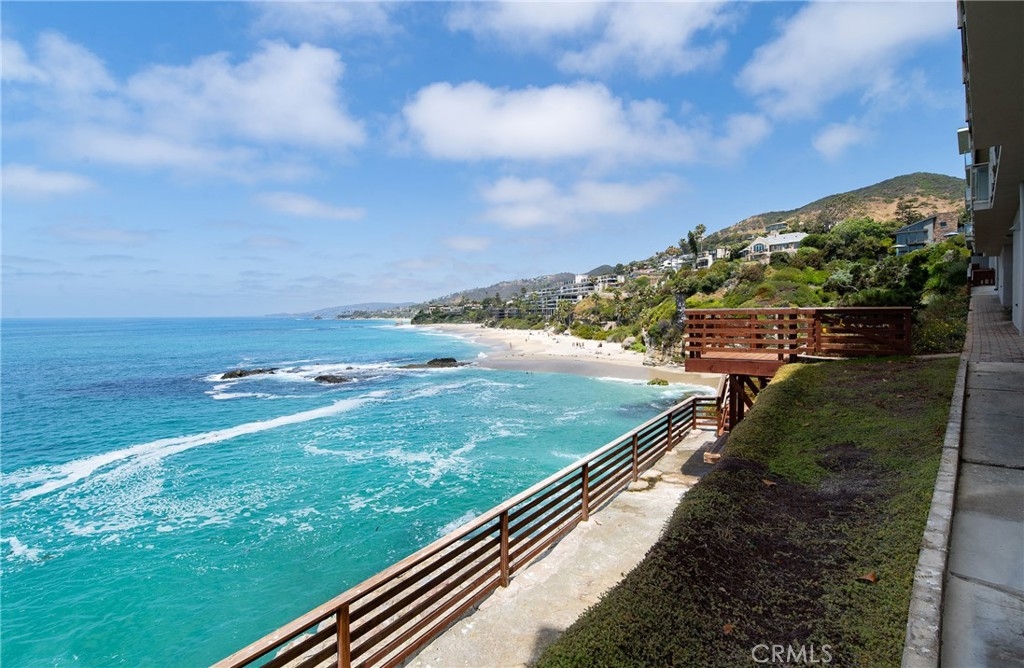 OCEANFRONT PARADISE at the best location in all of Table Rock! This stunning 2 bedroom 1.75 bathroom home offers a breathtaking experience with panoramic views of picturesque sandy beaches, whitewater surf breaks, turquoise and deep blue waters, and Catalina Island. Sliding glass walls allows the sights, sounds, and crisp ocean scent to encompass your living space. Luxuriously upgraded throughout with finished hardwood flooring, wood burning fireplace with quartzite facade, Sonneman Stix light fixtures, motorized window coverings, and custom built-in cabinets. The modern kitchen features quartzite counters and backsplash, self-closing cabinetry and drawers, and stainless steel Miele appliances. The primary bathroom features a large custom shower with separate soaking tub, quartzite walls, dual vanity, high-end fixtures, and ample cabinet/drawer space. The second bedroom features an ensuite bathroom, mirrored wardrobes, and a Murphy bed that converts into a desk. Table Rock Condominium Association amenities include a pool, spa, the "Rock Room" clubhouse, a gym, billiard room, picnic area, storage and private access to West Street Beach. Public access to Table Rock Beach is also steps away. Located near local favorite restaurants, art galleries, legendary resorts, shopping, and downtown Laguna Beach. A perfect vacation home or primary residence!
