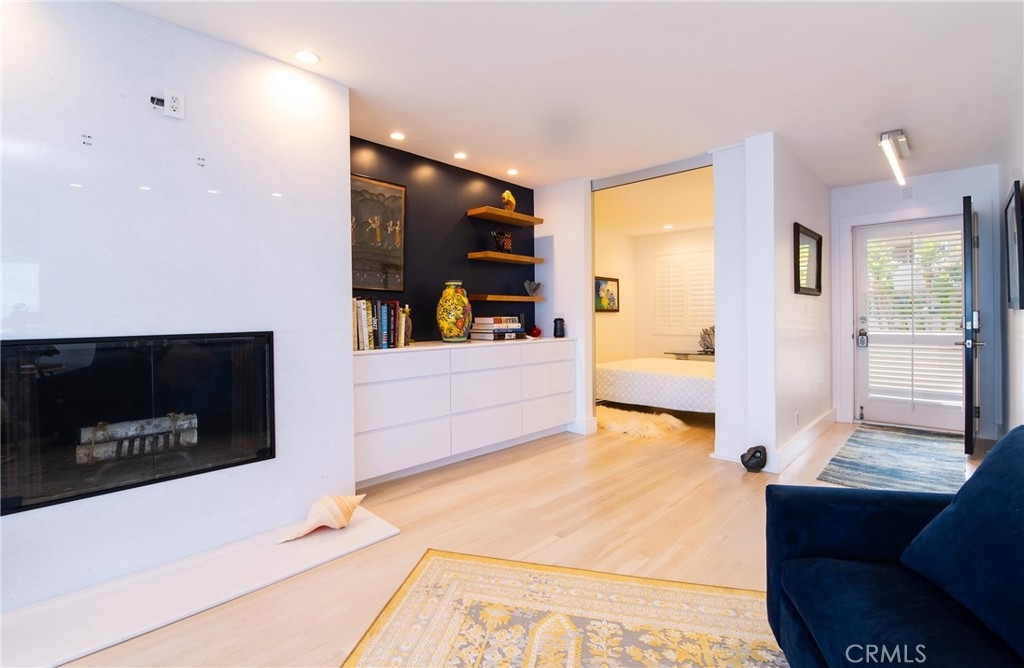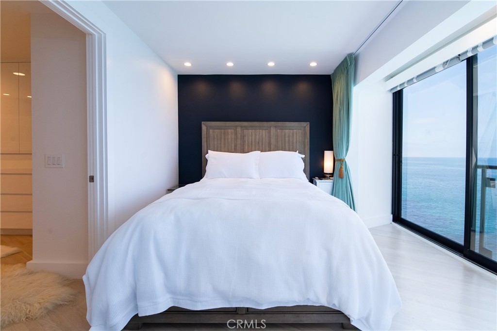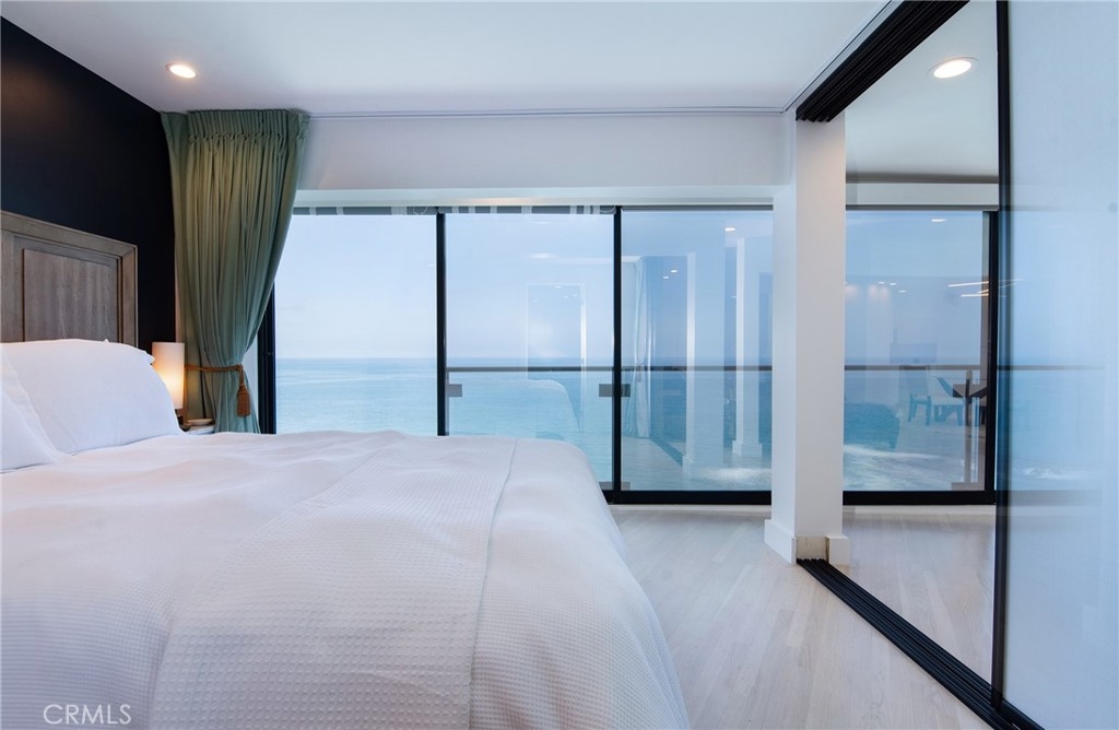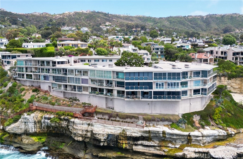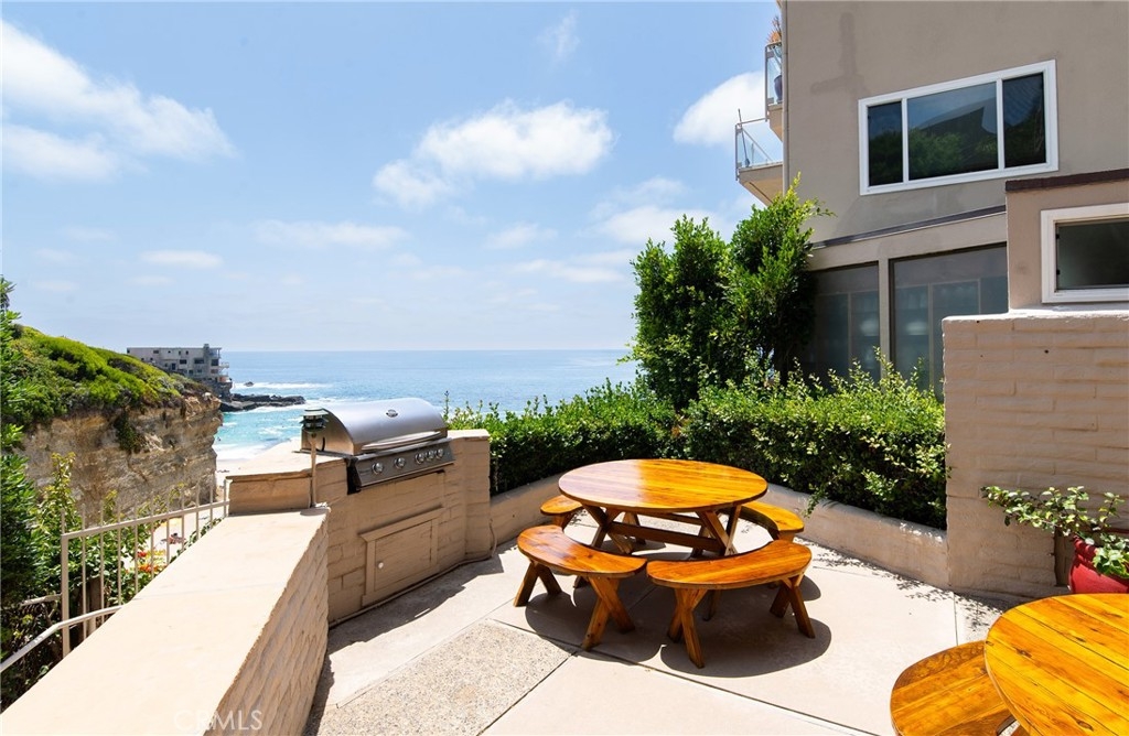 OCEANFRONT PARADISE at the best location in all of Table Rock! This stunning 2 bedroom 1.75 bathroom home offers a breathtaking experience with panoramic views of picturesque sandy beaches, whitewater surf breaks, turquoise and deep blue waters, and Catalina Island. Sliding glass walls allows the sights, sounds, and crisp ocean scent to encompass your living space. Luxuriously upgraded throughout with finished hardwood flooring, wood burning fireplace with quartzite facade, Sonneman Stix light fixtures, motorized window coverings, and custom built-in cabinets. The modern kitchen features quartzite counters and backsplash, self-closing cabinetry and drawers, and stainless steel Miele appliances. The primary bathroom features a large custom shower with separate soaking tub, quartzite walls, dual vanity, high-end fixtures, and ample cabinet/drawer space. The second bedroom features an ensuite bathroom, mirrored wardrobes, and a Murphy bed that converts into a desk. Table Rock Condominium Association amenities include a pool, spa, the "Rock Room" clubhouse, a gym, billiard room, picnic area, storage and private access to West Street Beach. Public access to Table Rock Beach is also steps away. Located near local favorite restaurants, art galleries, legendary resorts, shopping, and downtown Laguna Beach. A perfect vacation home or primary residence!