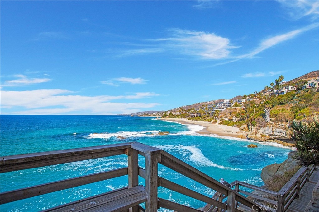 Overlooking picturesque white sandy beaches with turquoise and deep blue sea waters just beyond the surf break. This idyllic single level, 2 bedroom and 2 bath, ocean front condo was built to optimize ocean views with open concept living areas overlooking the coastline and vast ocean with a balcony perfect for whale watching and Catalina Island sunsets. Enjoy the beautifully appointed kitchen with stone counters, glass tiled backsplash and high end appliances. The expansive and private primary suite enjoys a balcony over the sea with incredible sunset views. The second en suite bedroom is spacious with an ocean view archway and sea glass colored tiles in the bath. This oceanfront condo includes a rare and private single car garage with driveway and additional storage. Community amenities feature a pool, spa, gym, billiard room, and an ocean view BBQ area. Private steps to the sand, only utilized by the Table Rock residents, lead to West Street Beach, famous for skimboarding and swimming activities and continues up the coast to the Montage Resort and the village of Laguna Beach. World-class resorts, including Ritz Carlton and Waldorf Astoria, golf, shopping and dining are all moments away!