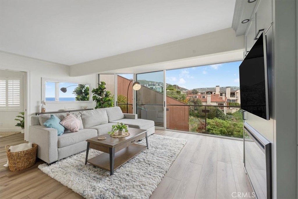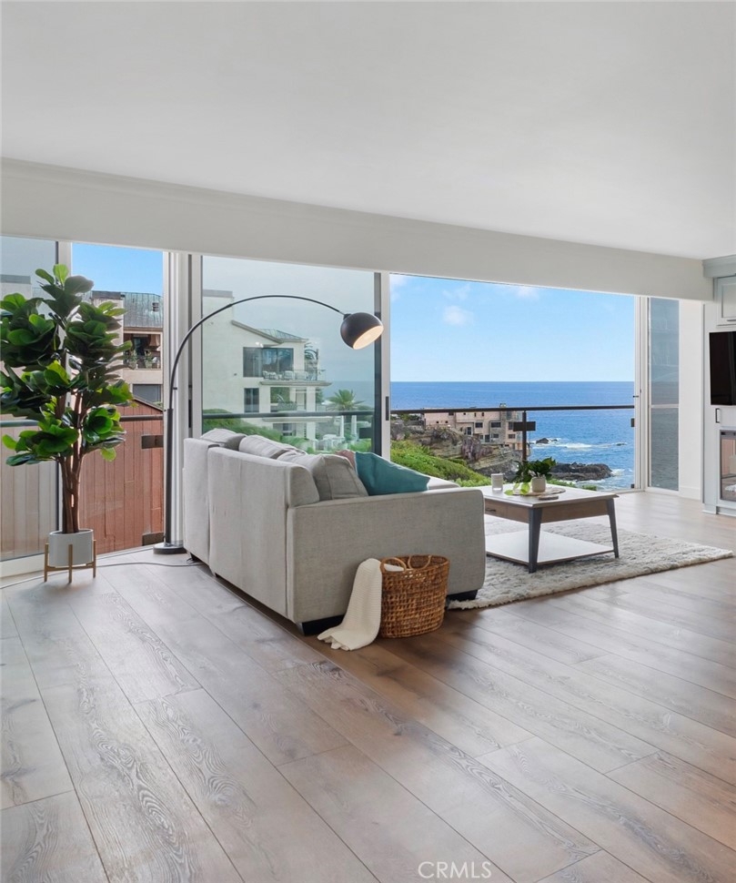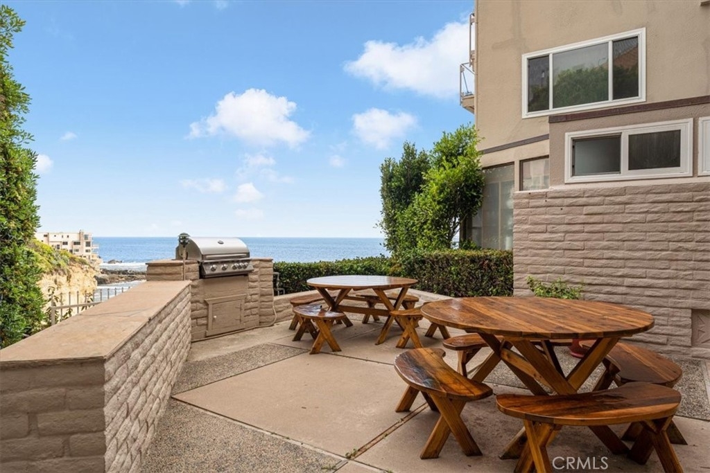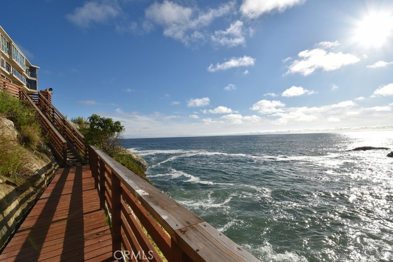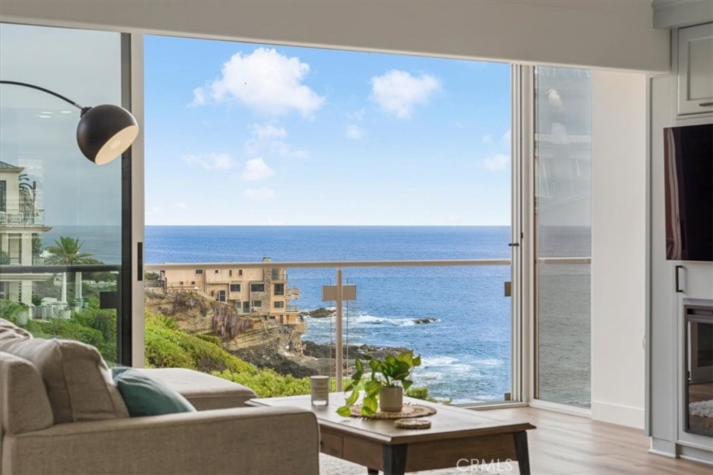 Imagine waking up to breathtaking ocean views every morning in this oceanfront haven. Nestled on a bluff in South Laguna Beach, this recently remodeled residence has stunning views, from the moment you enter the door. As you push back the sliding glass doors in the family room, you take in the sea breeze with the ocean fragrance amidst the sound of waves as you look over Table Rock Beach. This main-level beachside residence offers over 1000 sqft, two bedrooms, and a full spa-style bathroom. One assigned garage space approx 20ft from the front door for easy access. This unit doesn't have a unit above or below. Ocean views from most of the areas of the home, the interior details include a kitchen that opens to the family and dining areas, perfect for those who enjoy cooking while engaging with their family or guests. There's an oversized island with a built-in cooktop that seats up to four, white quartz countertops, and custom cabinetry. The family room has a built-in electric fireplace and surround sound for that touch of ambiance. The bedroom off the family room offers versatility with a full-size Murphy bed, two closets, and a dedicated workspace with a built-in desk. You can use the pocket doors for privacy or slide away the doors for an open feeling to the family room. The bedroom off the hallway accommodates a king-size bed with two nightstands and has a built-in closet with drawers. The spa-style bathroom has an oversized jetted jacuzzi tub and modern sink pedestal.There are wood shutters, luxury vinyl wood flooring, and recessed lighting. The elevator is close by ensuring easy access to various amenities and coastal experiences Table Rock community offers. Private, gated access to West Beach,walking path along the coastal bluff with sunsets that capture the soul, Catalina off in the horizon, breathtaking northern coastal views as far as the eye can “sea”, and south beach views of Table Rock Beach. Enjoy the abundance of sea life in the ocean & sky. There is a heated pool, jacuzzi, community laundry area, and BBQ area overlooking the beach. The Clubhouse, "The Rock Room", has a billiards room and gym. Just steps away from access to Table Rock Beach, restaurants, hiking trails & Trolley stop. As you venture out into Laguna Beach you'll discover a plethora of beaches, shopping, nightlife, The Montage Resort, The Ranch golf course, and Art district.Enjoy as a vacation home or full-time residence. Seller will entertain a lease option to purchase.