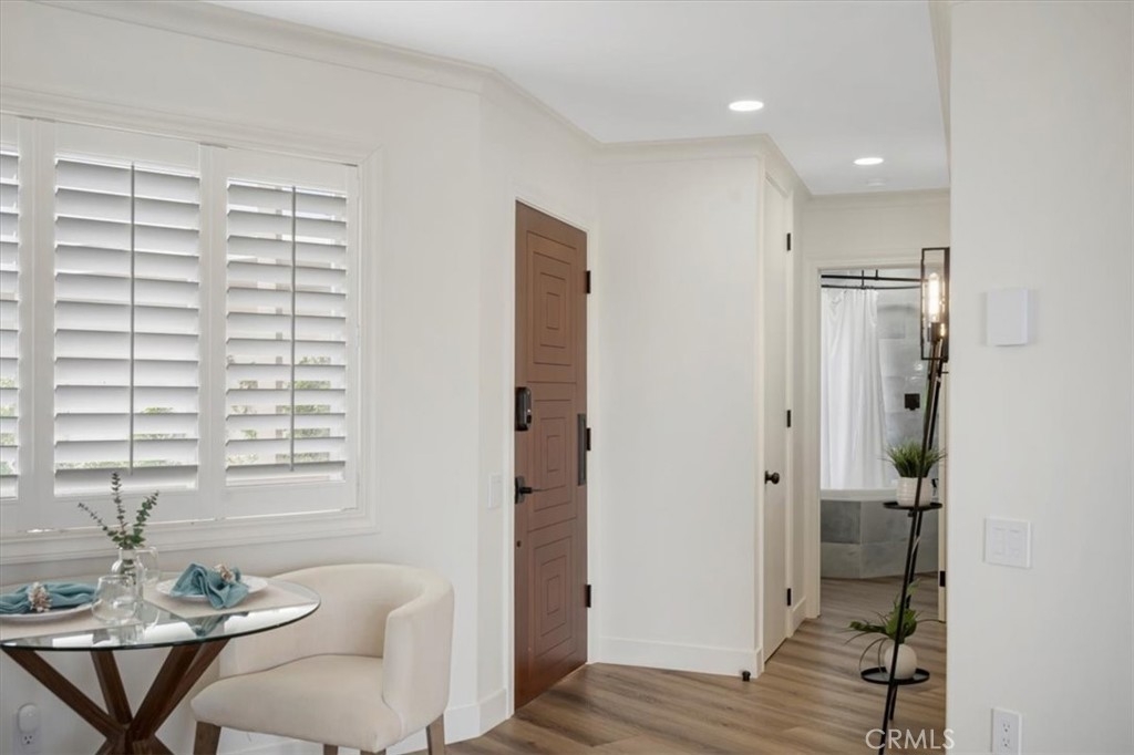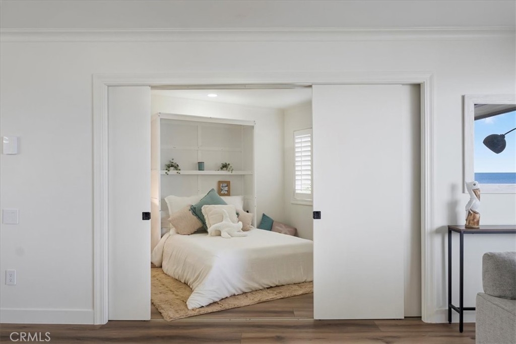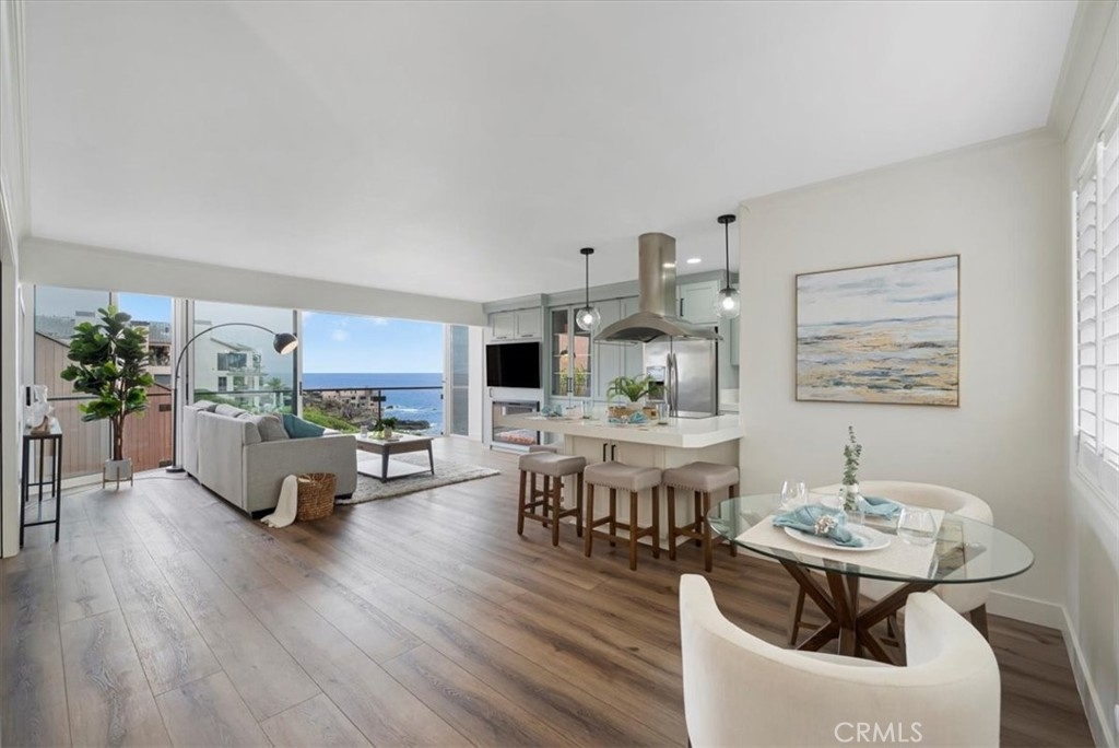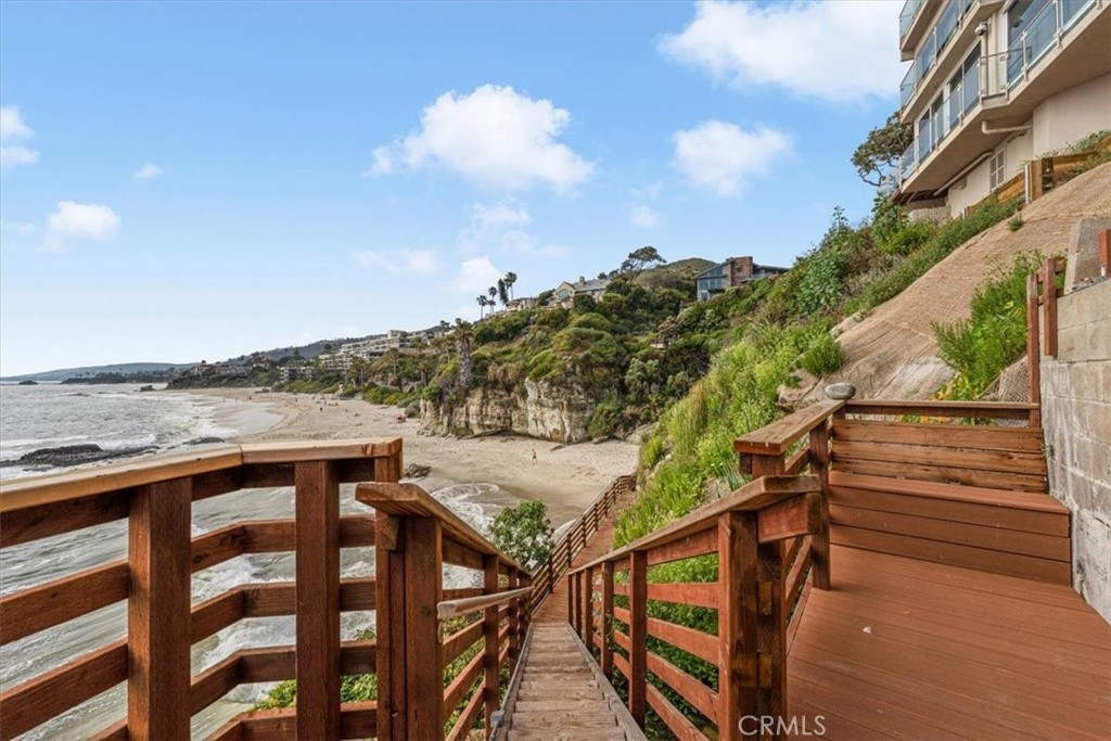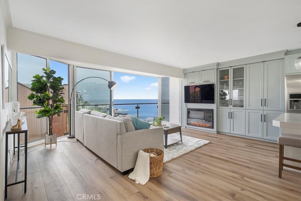 Imagine waking up to breathtaking ocean views every morning in this oceanfront haven. Nestled on a bluff in South Laguna Beach, this recently remodeled residence has stunning views, from the moment you enter the door. As you push back the sliding glass doors in the family room, you take in the sea breeze with the ocean fragrance amidst the sound of waves as you look over Table Rock Beach. This main-level beachside residence offers over 1000 sqft, two bedrooms, and a full spa-style bathroom. One assigned garage space approx 20ft from the front door for easy access. This unit doesn't have a unit above or below. Ocean views from most of the areas of the home, the interior details include a kitchen that opens to the family and dining areas, perfect for those who enjoy cooking while engaging with their family or guests. There's an oversized island with a built-in cooktop that seats up to four, white quartz countertops, and custom cabinetry. The family room has a built-in electric fireplace and surround sound for that touch of ambiance. The bedroom off the family room offers versatility with a full-size Murphy bed, two closets, and a dedicated workspace with a built-in desk. You can use the pocket doors for privacy or slide away the doors for an open feeling to the family room. The bedroom off the hallway accommodates a king-size bed with two nightstands and has a built-in closet with drawers. The spa-style bathroom has an oversized jetted jacuzzi tub and modern sink pedestal.There are wood shutters, luxury vinyl wood flooring, and recessed lighting. The elevator is close by ensuring easy access to various amenities and coastal experiences Table Rock community offers. Private, gated access to West Beach,walking path along the coastal bluff with sunsets that capture the soul, Catalina off in the horizon, breathtaking northern coastal views as far as the eye can “sea”, and south beach views of Table Rock Beach. Enjoy the abundance of sea life in the ocean & sky. There is a heated pool, jacuzzi, community laundry area, and BBQ area overlooking the beach. The Clubhouse, "The Rock Room", has a billiards room and gym. Just steps away from access to Table Rock Beach, restaurants, hiking trails & Trolley stop. As you venture out into Laguna Beach you'll discover a plethora of beaches, shopping, nightlife, The Montage Resort, The Ranch golf course, and Art district.Enjoy as a vacation home or full-time residence. Seller will entertain a lease option to purchase.