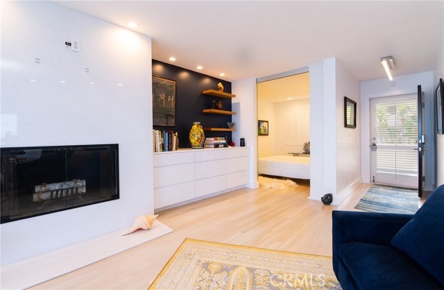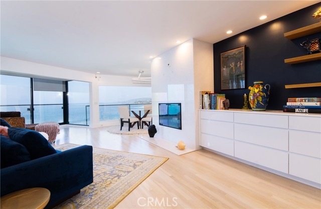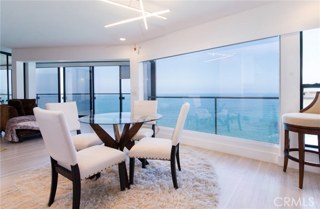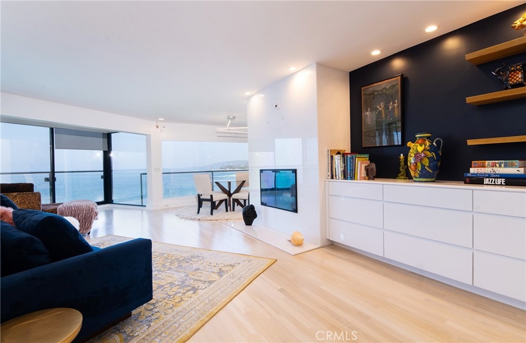 OCEANFRONT PARADISE at the best location in all of Table Rock! This stunning 2 bedroom 1.75 bathroom home offers a breathtaking experience with panoramic views of picturesque sandy beaches, whitewater surf breaks, turquoise and deep blue waters, and Catalina Island. Sliding glass walls allows the sights, sounds, and crisp ocean scent to encompass your living space. Luxuriously upgraded throughout with finished hardwood flooring, wood burning fireplace with quartzite facade, Sonneman Stix light fixtures, motorized window coverings, and custom built-in cabinets. The modern kitchen features quartzite counters and backsplash, self-closing cabinetry and drawers, and stainless steel Miele appliances. The primary bathroom features a large custom shower with separate soaking tub, quartzite walls, dual vanity, high-end fixtures, and ample cabinet/drawer space. The second bedroom features an ensuite bathroom, mirrored wardrobes, and a Murphy bed that converts into a desk. Table Rock Condominium Association amenities include a pool, spa, the "Rock Room" clubhouse, a gym, billiard room, picnic area, storage and private access to West Street Beach. Public access to Table Rock Beach is also steps away. Located near local favorite restaurants, art galleries, legendary resorts, shopping, and downtown Laguna Beach. A perfect vacation home or primary residence!