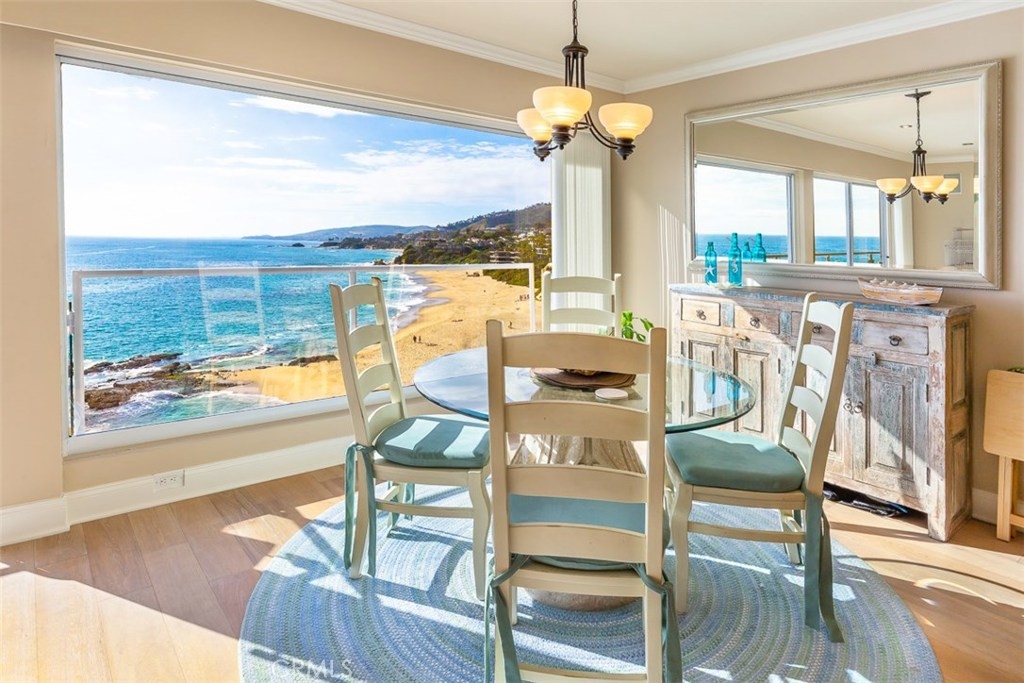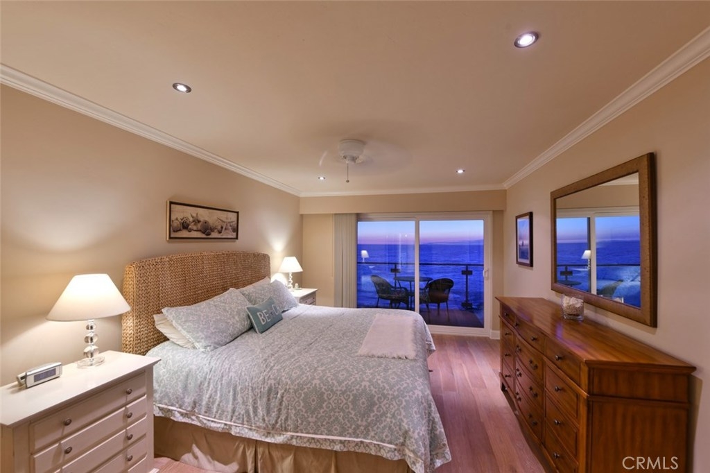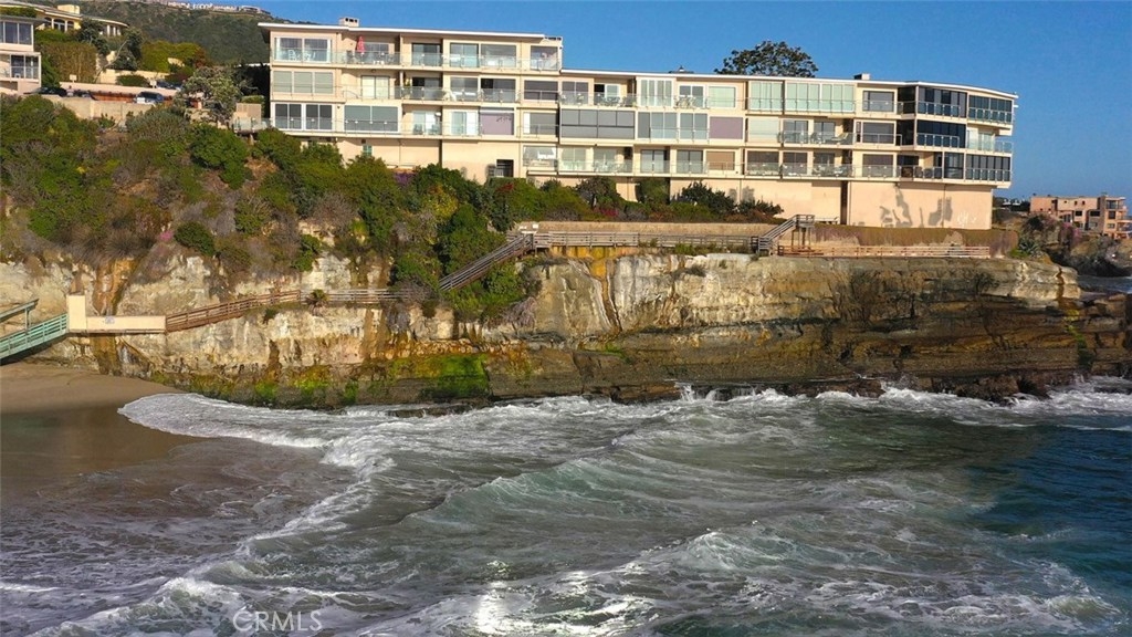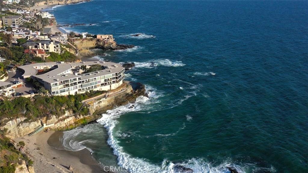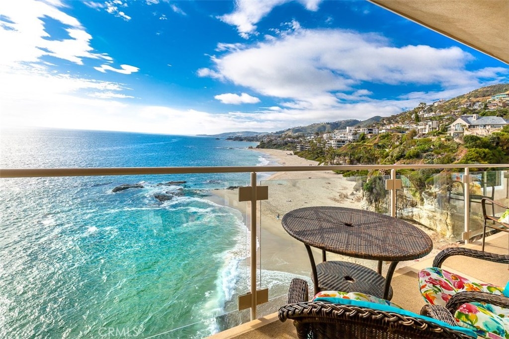 Unquestionably one of the most emotionally stunning locations in the famed Table Rock community perched on a rocky peninsula that juts out into the Pacific. This spectacular west facing unit offers mesmerizing views of Catalina Island, year round golden sunsets, north coast white water and city light views to Palos Verdes. The jaw-dropping views of crashing waves and white sandy beaches below are simply breathtaking from every room. This one-of-a-kind location and immaculate, remodeled home with newer hardwood floors in “beach chic” style is both modern and comfortable for weekend getaways or a long term residence. A balcony stretches the length of the unit for al-fresco dining and a Terrazzo stone fireplace glows in the living room on cooler winter nights. Each bedroom has an en-suite bath and the guest room features a Murphy bed that allows the room to double as an office. The spacious master suite has a private balcony to take in the awe-inspiring views with a glass of wine. An updated kitchen is adjacent to the dining room with walls of glass to the crashing surf below. This premium 3rd floor location has no steps from your private garage to the unit. The complex offers a beautiful pool in the center courtyard, lush tropical landscape, ample guest parking and easy access to one of the best beaches in Laguna. A/C has been approved by the HOA for those owners that desire. Seller may carry!! Creative terms available!