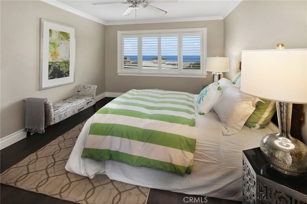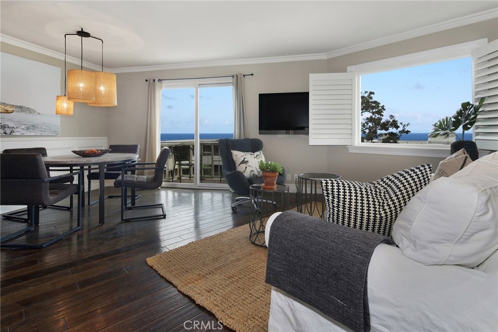 Blue Ribbon ocean views and beach access from this charming two bedroom, one bath unit in the oceanfront complex at Table Rock. Beautiful upgrades include wide plank oak floors, granite kitchen counter tops, wainscoting and crown molding. Enjoy the lovely landscaped grounds and the convenience to the pool, laundry room, garage and guest parking. Amenities include heated pool and spa, BBQ area, exercise room and direct beach access. Table Rock is in a great location moments from all that Laguna Beach has to offer with its fine restaurants, charming shops, 5 Star Resorts, world renowned art galleries and beautiful beaches.