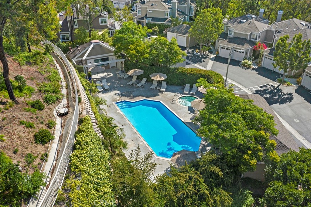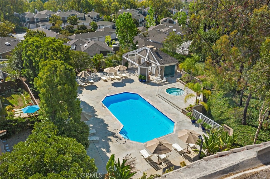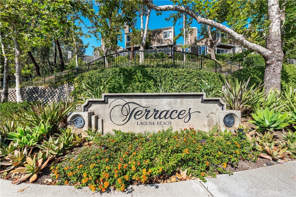 Two level townhome style condominium in the desirable 500 circle area of the Terraces, Laguna Beach! Great setting in the complex backing to outdoor wooded, tree lined spaces. Main level with open living room, dedicated dining area and tile kitchen. Kitchen appliances include gas range, built-in microwave, dishwasher and refrigerator/freezer. A slider from the living space leads to the rear dedicated patio with open space greenery. Two master suites are on the upper level, each with direct access bathrooms. The main master suite has hillside view, two lengthy closets, dual vanities and shower with tub. The high ceilings in this residence allow plentiful natural light, enhanced by skylights. One car direct access garage, plus secondary one car garage across the driveway. Association includes two beautiful pool complexes with one conveniently accessed up from this circle via nearby walkway. A Laguna Beach address with all it's advantages of LBUSD schools, no mello-roos, accessibility to all of town, while also having Aliso Viejo parks, recreation, shops and major freeway + toll road access nearby.