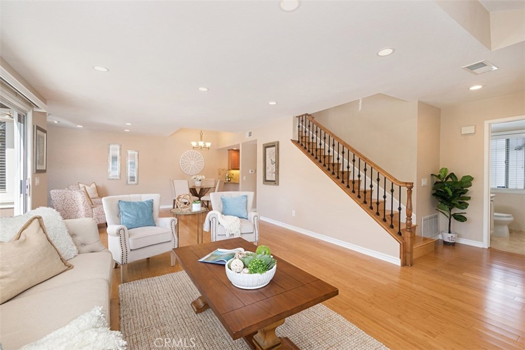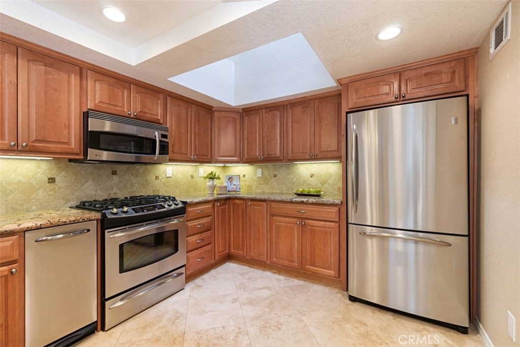 FANTASTIC PRICE! ELEGANTLY UPGRADED END UNIT CONDO WITH A RARE TWO CAR ATTACHED GARAGE!! This exquisite Cape Cod-style townhome shows and feels like a single family residence and is the largest model in the highly desirable community of the Terraces - Laguna Beach. The downstairs open floor plan exhibits a gorgeous custom fireplace, lighted granite wine bar complete with Vinotempo wine refrigerator, and classic bamboo flooring throughout that leads one to both an entertainer’s patio and the residence’s kitchen. The patio itself is serene and private, while the home’s kitchen offers opulent granite countertops accented by complementary stone backsplash, stainless steel appliances, custom maple cabinetry, a dramatic skylight and a breakfast bar. The home’s second story features ceiling fans in every room, a spacious den complete with a closet (that can easily be converted into the home’s THIRD bedroom), and an inviting master suite that proudly boasts vaulted ceilings, a custom closet barn door, and an elegantly upgraded master bath with his-and-her vanities. This townhome also offers built in shelving in every closet and vessel sinks throughout, and is equipped with a Life Source water filter system. Its residents will enjoy a sought-after Laguna Beach location that is close to hiking and biking trails, the 405, 5, 133 and 73 freeways, the HOA’s two swimming pools and spas, and Laguna Beach’s shops, restaurants and top rated schools.