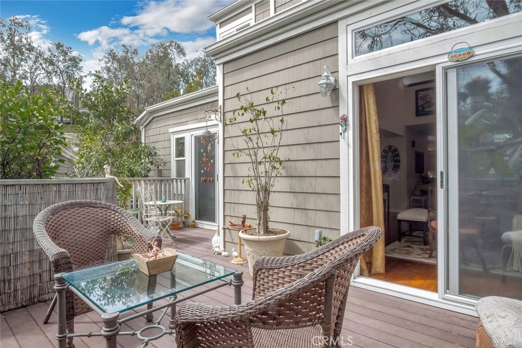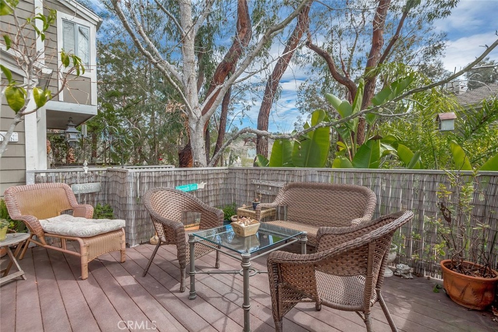 Do you love the convenience, cuisine and culture that Laguna Beach is recognized for? You'll love this 1,426 sqft / 2 bedroom + loft / 2.5 bath Cape Code style townhome. The unique location of this home caters to those who desire living near the beach, yet it also enjoys the seclusion of being tucked away within the magical Laguna Canyon hillside. Upon entry, you will immediately notice an open floor plan that showcases wall-to wall cherry wood flooring, vaulted ceilings and tall sliding glass doors leading into an inviting outdoor living space. A charming kitchen has been remodeled with solid-wood cabinets, stone tile backsplash and sleek black granite slab island/breakfast bar. Well-appointed, remodeled bathrooms feature granite countertops, dual vanity, title/wood flooring and a sunken tub to relax in at the end of your day. The master suite is located on the main floor, which includes a spacious walk-in closet and it's own entry into a private deck area filled with serenity. Residents can enjoy all aspects of the community amenities; swimming pool, jacuzzi spa, barbecue grill and walking/hiking trails, while also taking advantage of easy access to all the local events Laguna Beach offers like the annual Sawdust Art Festival, Laguna Art-A-Fair and the Festival of Arts.