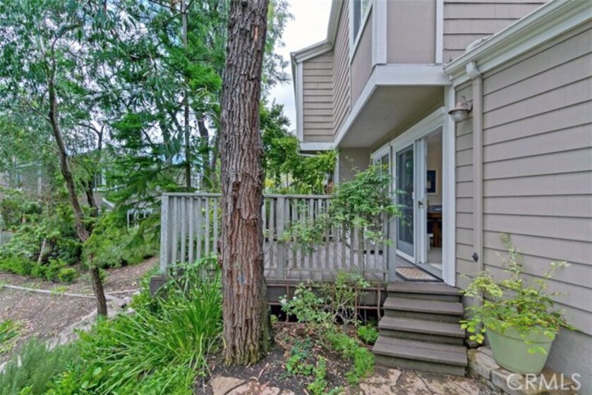 Here is your opportunity to own that Laguna Beach address you’ve been DREAMING of. This light & bright Cape Cod style town home is just inland from Laguna Canyon & downtown Laguna Beach. The kitchen has been newly renovated with beautiful refaced cabinets & soft close drawers; newly purchased appliances: stainless steel convection/traditional oven/stove top, dishwasher & microwave (refrigerator included); plus a built-in desk. There is a breakfast bar overlooking the kitchen. Dining area has a custom built-in banquette perfect for large gatherings.The large living room has a custom built-in window seat and custom fireplace. Slider opens onto a large deck with trek-like flooring & hookups for gas & water plus electric outlet. Off the deck the abundance of trees & plants gives the home a private forested feeling. Finishing up the downstairs is a 2-piece powder room. Upstairs via the sky-lighted stairs & hallway to the 2 master bedrooms on opposite sides of the home, both with vaulted ceilings & en-suite bathrooms. One bedroom is a little larger with additional closet space, skylight & dual sinks in its own private bathroom. There is a 1-car attached garage (with washer/dryer included) plus another 1-car detached garage.Community has 2 pools/2 spas, lovely grounds & BBQ area. The home is just east of the 73 toll road & about 3 miles from the 5 freeway.