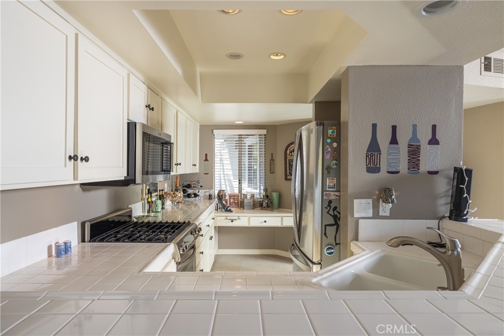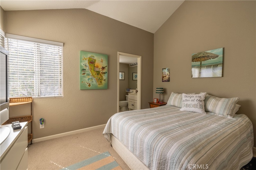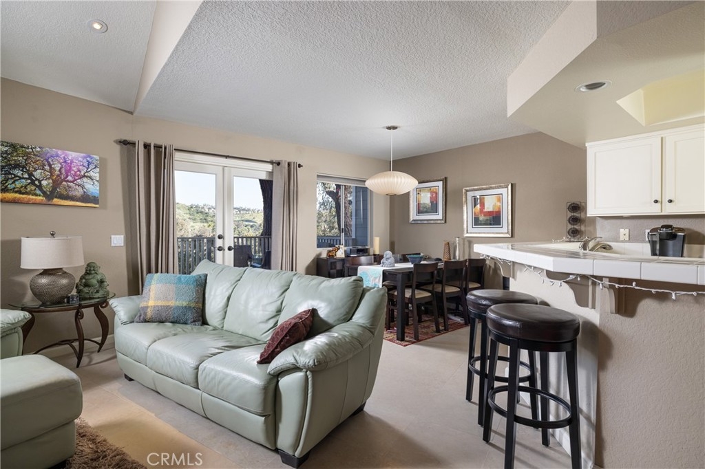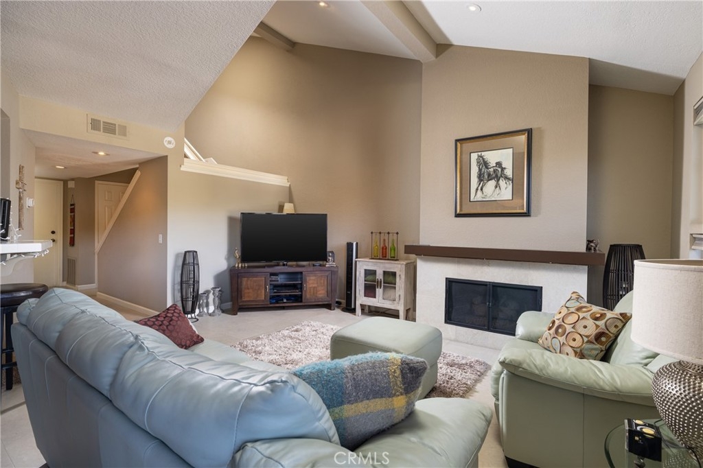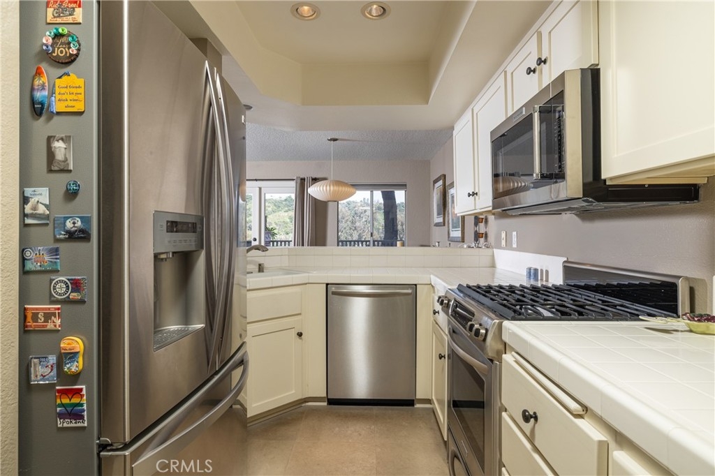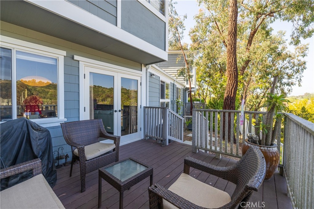 Enjoy the highly sought after Laguna Beach lifestyle and school district here in Laguna Terraces. This property features cathedral ceilings, skylights, and panoramic views throughout plus a small yard to supplement the outdoor deck. The main level has beautiful honed French limestone flooring. The kitchen, overlooking the dining and great room, is complete with upgraded cupboards and stainless steel appliances. Upgraded double French doors lead to the serene deck and yard. This two-bedroom home includes a primary room with views and a large bathroom retreat with dual sinks and a large jacuzzi tub. The second bedroom is en-suite. Parking includes 2 garages, a direct-access 1 car garage complete with laundry hookups plus a separate enclosed 1 car garage. HOA amenities include 2 pools and spa and outdoor cooking area. Centrally located in the Canyon close to hiking trails, shopping, world class restaurants, and within the Laguna Beach school district. Enjoy easy commuter access to toll roads, freeways and beach cities.
