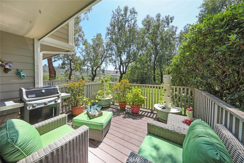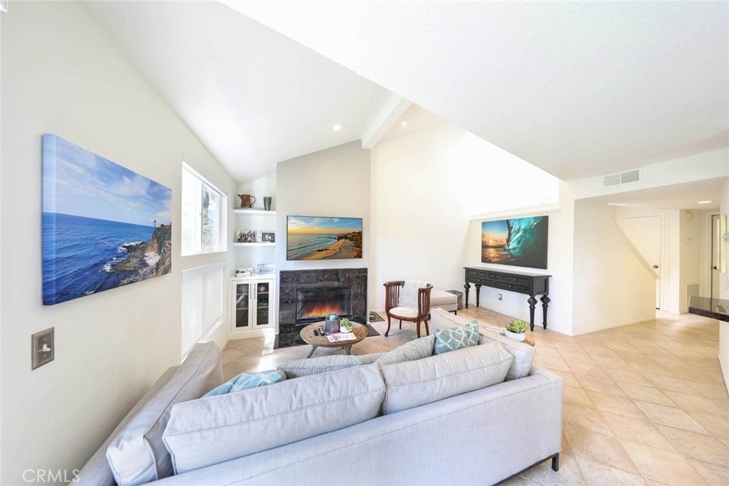 Perfectly nestled on the outer perimeter of the Terraces is this beautifully designed home with a bright open space and cathedral ceilings that amplify the natural light. An updated kitchen with subway tile backsplash and quality appliances is open to the living space which overlooks the tranquil greenbelt and surrounding trees. Upstairs is your spacious master bedroom and updated ensuite bathroom. A second bedroom is bright and private with the scenery. A beautiful patio deck with a greenbelt backdrop is large enough to enjoy with friends. Ideally located, this charming community in Laguna Beach is highly sought after for it's proximity to the beach lifestyle ease of access to freeways and nearby cities of Aliso Viejo and Laguna Hills
