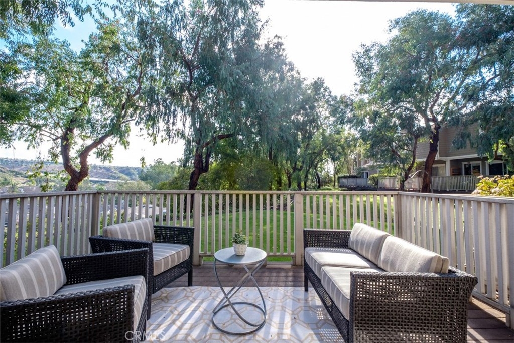 Private and tranquil views of the trees and hills, this greenbelt view property is an amazing value in Laguna Beach. Take advantage of the premium location a short drive to the beach/shops/freeways/local airport. Award-winning LB Schools in addition to all the community perks apply to this home as well! Refreshed and updated, this townhouse style condo lives like a standard home with no one above or below. A courtyard entrance is lush and maintained professionally like the rest of the community. Upon entering the home, you will appreciate the open floor plan and light and bright color scheme. Direct access from the attached garage with epoxy flooring is convenient and houses the laundry area. A second, over-sized garage is detached with additional storage space. The dining area is ample with room to entertain and the kitchen with upgraded appliances and granite counters. Recessed lighting and a pantry are also nice features in this space. The living room with a vaulted ceiling is anchored by a stone faced fireplace and hearth, new laminate flooring and access to the spacious deck and view! Upstairs are the master and secondary bedrooms, both with en suite baths and vaulted ceilings. The master is outfitted with great storage including a standard closet and a walk in. A linen cabinet is also located next to the dual vanity, a soaking sized tub with shower, and a separate water closet houses the toilet. If you're looking for a peaceful and prosperous 2018, this home is for you!