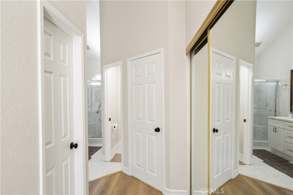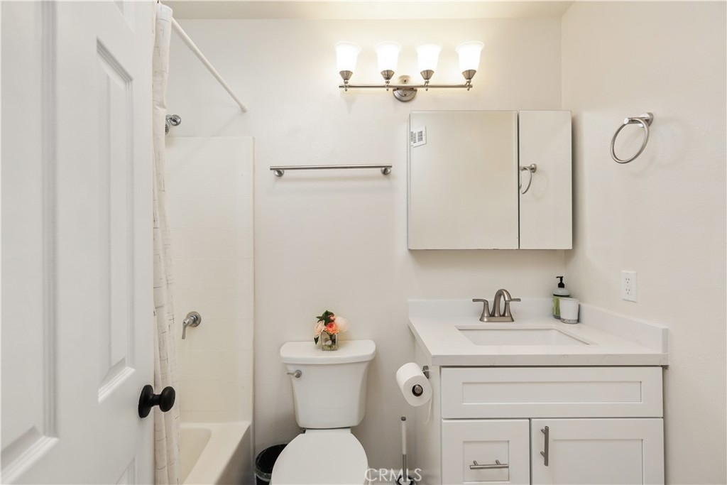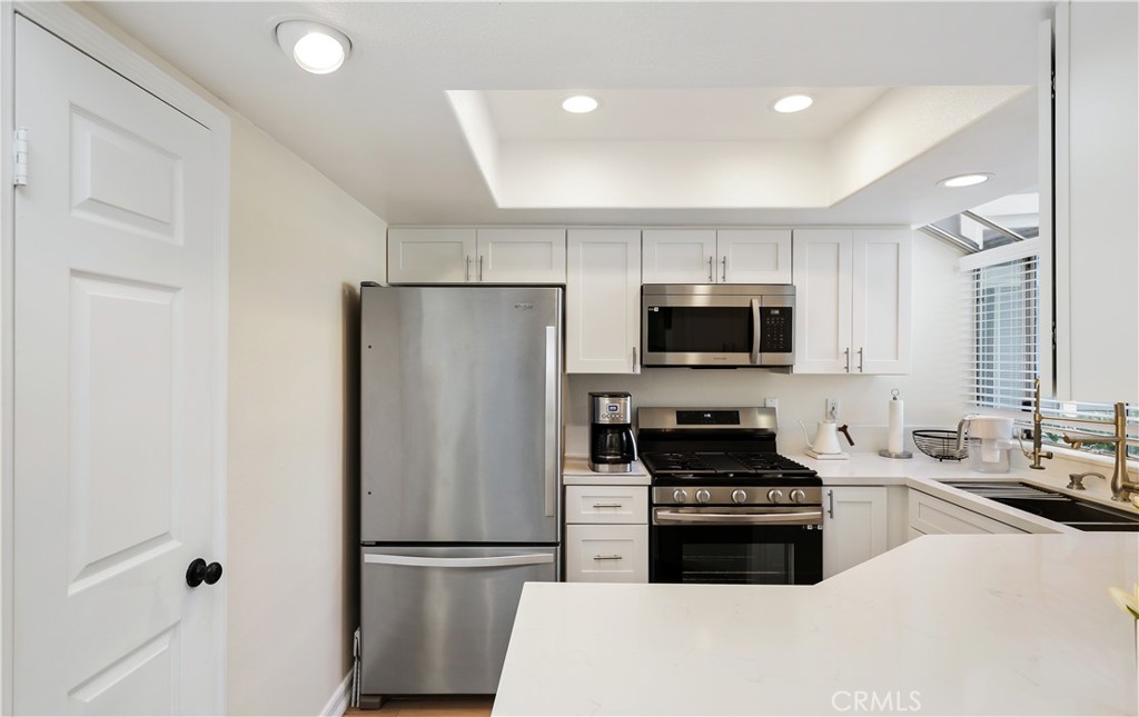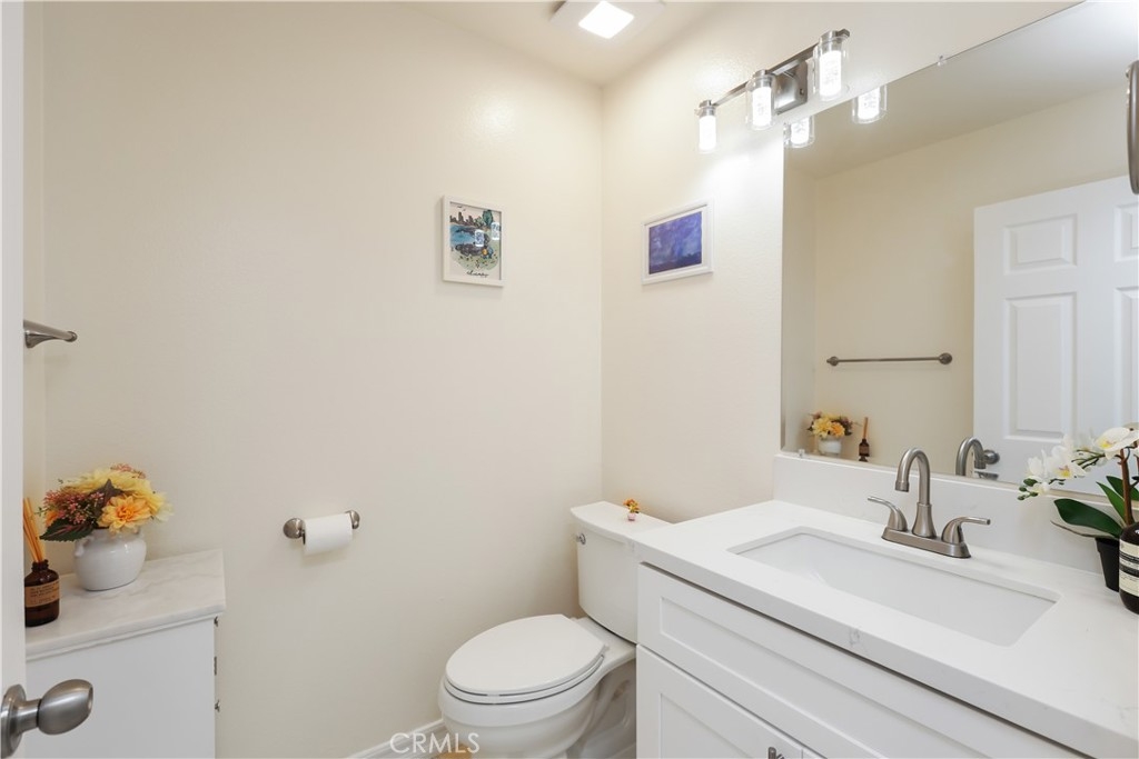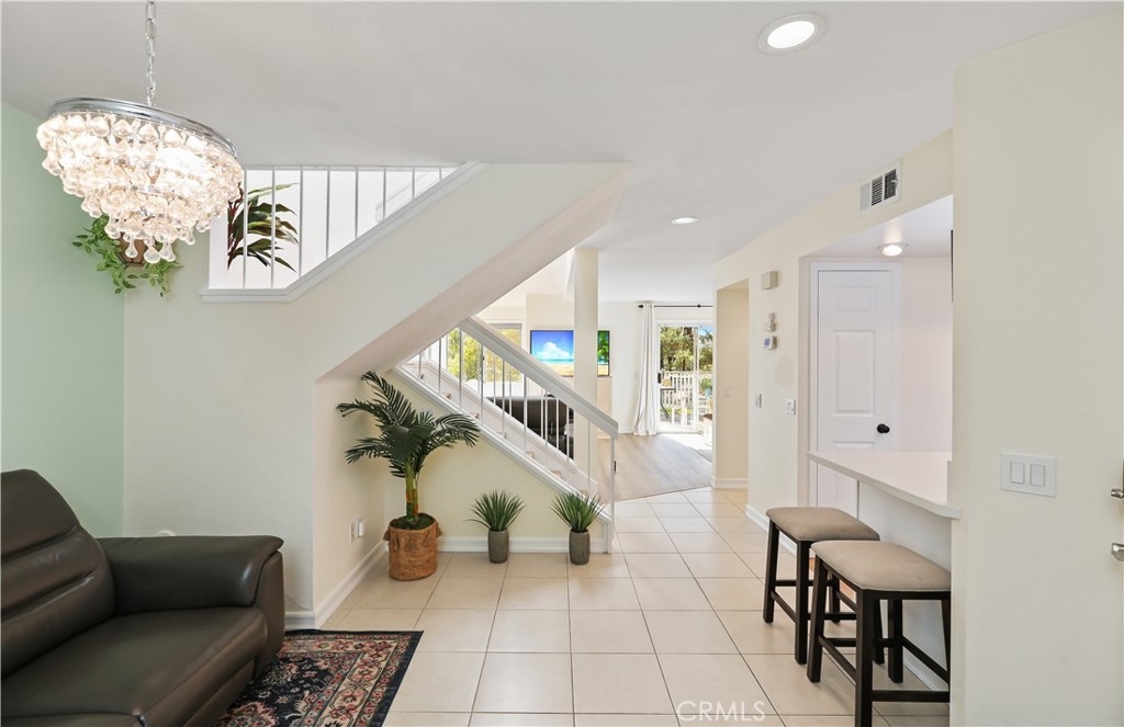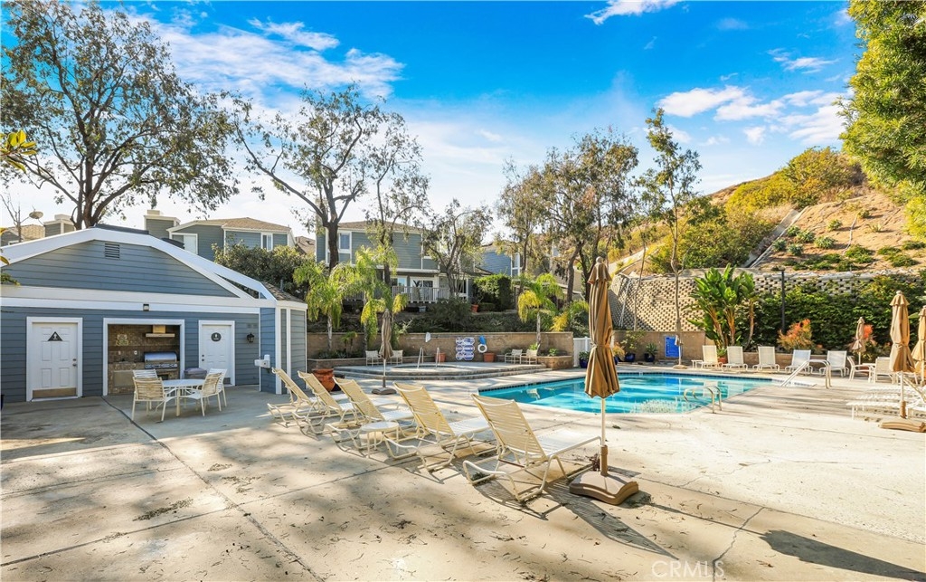Nestled in the serene community of The Terraces, this beautifully updated townhouse-style condo boasts a PREMIUM lot with stunning views of the adjacent grassy greenbelt and surrounding trees. Located in the award-winning Laguna Beach school district and close to desirable community amenities, this home combines convenience with tranquility. Turn key and thoughtfully updated, the property offers a welcoming, homey atmosphere with no neighbors above or below. The living area greets you with vaulted ceilings and an inviting deck that overlooks the lush open space. A separate dining area adjoins the kitchen, which is equipped with upgraded appliances, granite countertops, recessed lighting, and a convenient pantry. The living room features a cozy stone-faced fireplace, laminate flooring throughout entire home, and easy access to the spacious deck – perfect for relaxing or entertaining. Upstairs, you’ll find the primary suite and a secondary bedroom, both with updated en-suite bathrooms and vaulted ceilings. The primary suite offers a walk-in closet, quartz countertop dual vanities, a linen cabinet, and remodeled enlarged walk in shower. Additional highlights include a one-car attached garage with direct access to the property, and a second detached garage located just steps away with shelving for additional storage!