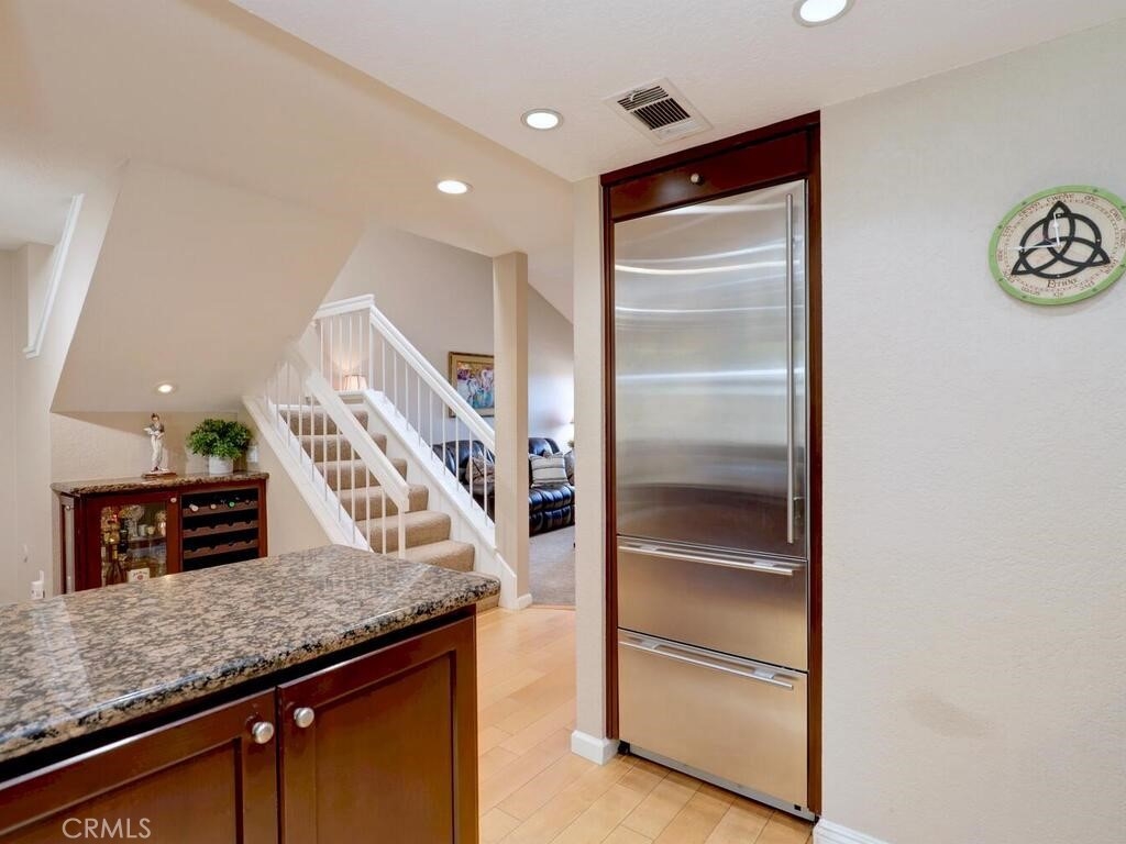This beautifully upgraded VIEW home is nestled at the pinnacle of the quiet and serene Terraces community and is surrounded by the mountains of Laguna Canyon. This extraordinary gem is the ultimate in coastal affordability. Boasting 2 large bedrooms (both with en-suite bathrooms and vaulted ceilings) and an open floor plan with panoramic canyon views, it won’t last long! It’s been beautifully updated with neutral paint and trim, a cozy fireplace, mirrored closet doors, shutters, invisible screen doors, ceiling fans and even a new HVAC system. The richly appointed kitchen has been re-designed for maximum efficiency. It features stainless steel appliances, recessed lighting, granite countertops and a slim line SUB ZERO built in refrigerator. Walk through the French doors that are just off the spacious family room you will be captivated by the sweeping panoramic views and coastal breezes off your large Trex deck. Conveniently located close to the resort like pool and jacuzzi, just down the walking path! Parking includes two single car garages (one with direct access) for lots of storage room. There is an additional driveway space as well. Enjoy all Laguna Beach has to offer! This location provides convenient access to the 73, 405 and 5 freeways, minutes to Irvine Spectrum, world class Laguna beaches, hiking trails, art galleries and more! Award winning and coveted Laguna Beach School District. Hurry, your dream home awaits!