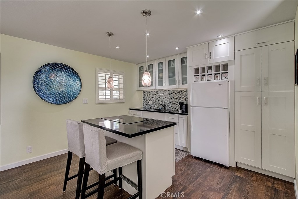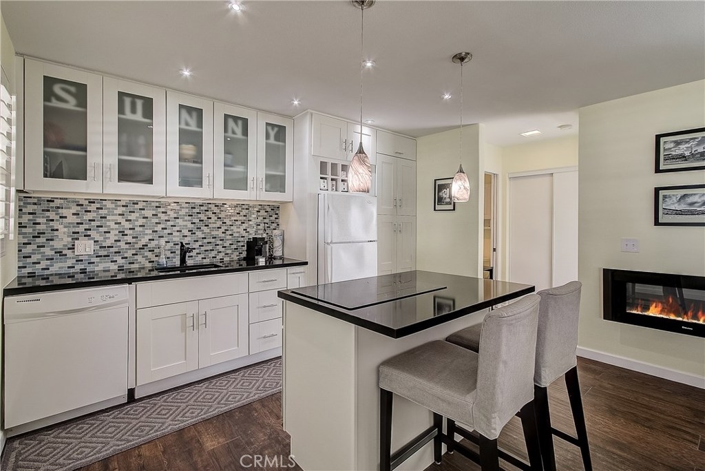 Panoramic views of the Pacific and sounds of waves crashing await you in his upper-level single story beach home in the world-renowned community of Laguna Beach! Tile plank floors, plantation shutters and newer windows compliment the bright and open floor plan. The fully remodeled kitchen features fresh white cabinets, quartz counter tops, mosaic tile backsplash, center Island with bar seating and beautiful light pendants. The living room flows seamlessly from the kitchen and features light-catching windows and beautiful ocean views. The master suite features ceiling fan, ample closet space and an en-suite remodeled bathroom with tub, shower and updated vanity. The master bedroom features a private patio to enjoy stunning sunset views and the melodious sounds of the ocean. The desirable Woods Cove community offers residents a gorgeous atrium to enjoy the CA sunshine and social gatherings, a meeting room with kitchen and library, on-site laundry, and an equipment storage room for surfboards and bicycles. With the favored location on the South side of the Pacific Coast Highway and just a short walk to the beach, close to world-class shopping, entertainment and schools…welcome home!