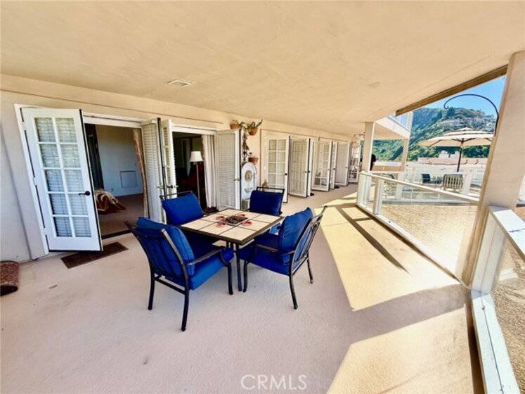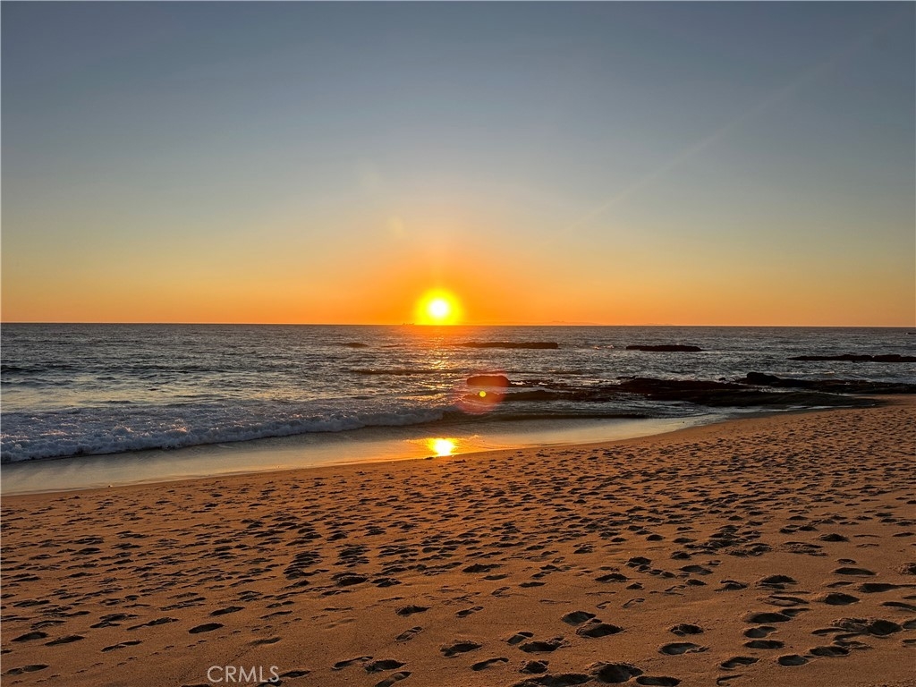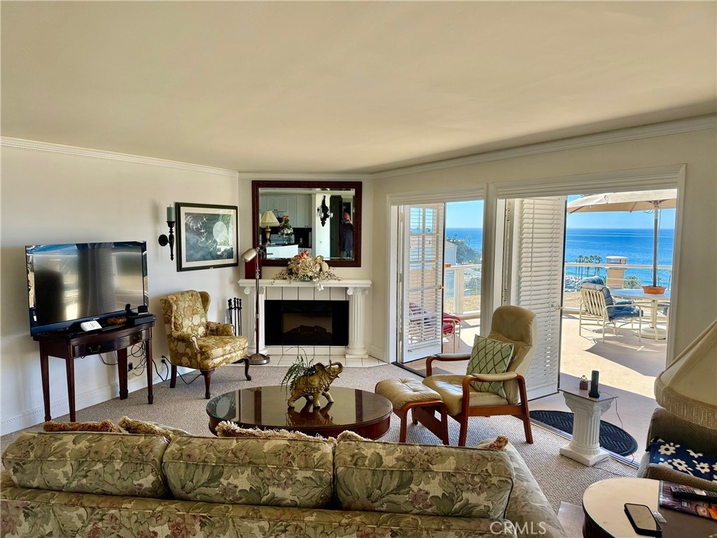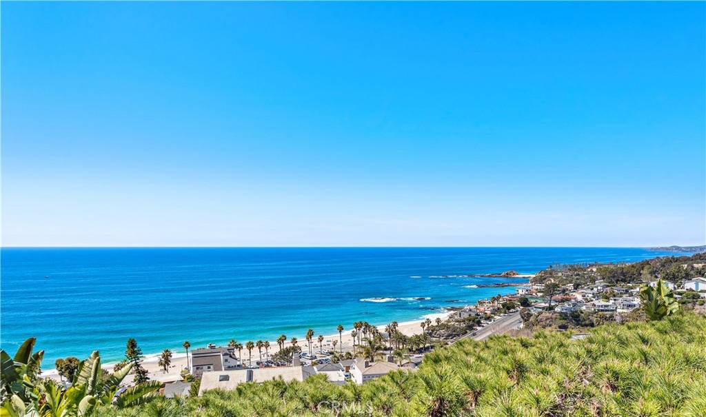 Stunning ocean and whitewater views from this single-level Creekside condo. No steps from the adjacent garage provides a seamless 30 second car-to-door entry into the spacious interiors of this updated two bedroom and two bath beach residence. A very unique opportunity to have sit-down panoramic views without any exterior or interior steps. A huge wraparound deck spans the length of the living room and primary bedroom presenting a private indoor/outdoor lifestyle. A new spacious kitchen offers stone counters, recessed lighting, custom cabinetry and ocean view bar seating. The living room blends with a large dining area complimented by a bank of French doors opening to the view deck. The primary bedroom provides bed-height coastal views, large closet, access to the deck and a spacious bath. An oversized second bedroom has multiple windows, walk-in closet and private bath entrance. The interiors and exteriors are very private and the enormous deck provides three separate entertainment areas with elevated views of Aliso Beach, Camel Point, Catalina Island, the creek and year around sunsets. Stepping out the front door leads immediately to two garage car spaces as well as a gated entry and sidewalks to the Aliso shopping center, Lang Park, the Montage Resort, beach access to Treasure Island and Aliso beach and, of course, the trolley into town. A separate private stairway system leads below to the access road for additional beach access and The Ranch. Truly a single-level lifestyle with a beach-close environment. Watch for whales and listen to waves.