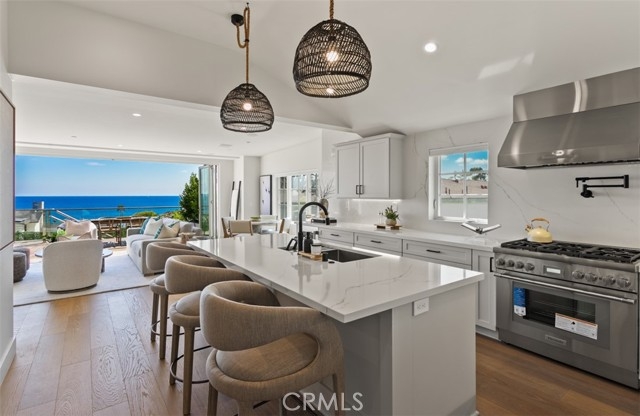 Discover refined coastal living at 1373 North Coast Highway at The Crescent Collection, a striking, newly developed Laguna Beach residence offering approximately ~3,000 square feet of modern luxury with panoramic ocean views and expansive balconies that capture the beauty of the California coastline. Designed for both elegance and convenience, this home features a private elevator, open-concept living space, and high-end finishes throughout. The gourmet Chef's kitchen is equipped with a full suite of Thermador appliances—including a six-burner ProHarmony range, smart refrigerator and freezer, built-in wine fridge, and microdrawer—blending style with cutting-edge technology. Residential amenities include smart home systems, audio/visual enhancements, and multiple view terraces designed for entertaining. The home’s three expansive bedrooms provide comfort and style, with spacious layouts designed for relaxation. The primary suite captures the essence of resort-style living with ocean vistas, a luxurious bath, and private outdoor space. Thoughtful details such as tempered glass railings, copper accents, Jeld-Wen custom doors, and Milgard ultra low-e panels showcase craftsmanship and durability, while a Boral Madera tile roof and James Hardie siding provide lasting strength and design integrity. Parking is effortless with a private single-car garage plus two additional reserved spaces behind a secure LiftMaster gate. Just moments from the world-famous beaches, art galleries, and fine dining, this residence embodies the best of the Laguna Beach lifestyle. 1373 North Coast Highway—where modern design meets timeless coastal luxury.
