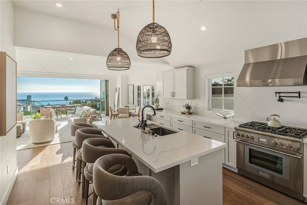 Experience elevated coastal luxury in The Crescent Collection, a contemporary Laguna Beach residence defined by panoramic ocean views, a private elevator, and an expansive terrace designed for seamless indoor outdoor living. The chef’s kitchen is designed for elevated entertaining and everyday ease, featuring a full Thermador appliance suite, a pot filler faucet, and thoughtful smart home and audiovisual enhancements. The primary suite is a true retreat with a luxurious en suite that includes dual sinks, bathtub, and walk-in shower, plus French doors that open to an ocean view. On the first level, a versatile flex space offers endless possibilities as a home office, secondary lounge or TV room, or a private workout studio. Extending the home is a rooftop area that currently features turf and is permitted to add additional exterior amenities, creating an exceptional opportunity to customize an elevated outdoor experience. Refined details throughout include tempered glass railings, copper accents, custom doors, and energy-efficient glazing. Completing the offering is a single-car private garage with two reserved parking spaces, delivering privacy and convenience in one of Laguna Beach’s most coveted settings.