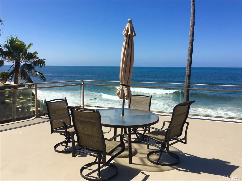 Drastic Reduction for quick sale! Newly updated single-level Ocean Front condo in Laguna Sands with panoramic Catalina Island views, situated right next to Surf & Sand Hotel in the "Hip District" area of Laguna Village. Woods Cove. Boutiques, Art Galleries and Restaurants are steps away from this Beach Front location on ocean side of Coast Hwy. A wall of windows (Floor to Ceiling) open to a spacious deck, just above pool & spa area. Interior features hardwood floors throughout and a great-room concept that includes Living room, Dining room and Kitchen. Private covered Balcony for lounging or al fresco dining with panoramic ocean views connects with large rooftop deck that expands the entertaining area. All rooms are on main level (no stairs!) and Master Bedroom is ensuite with dual vanity sink. Inside laundry with stack-able washer/dryer. Remodeled kitchen with Bosch, Gaggenau appliances. Luxury condo comes with secured gated parking with elevator to unit level (again - no stairs). Investment potential with income history of $5,500-7,500/mo. Surf and Sand next door offers dining and entertainment. Hop on the trolley to Main Beach and all local festivals. Enjoy Resort living all year round! Tenant has vacated and now easy to show!