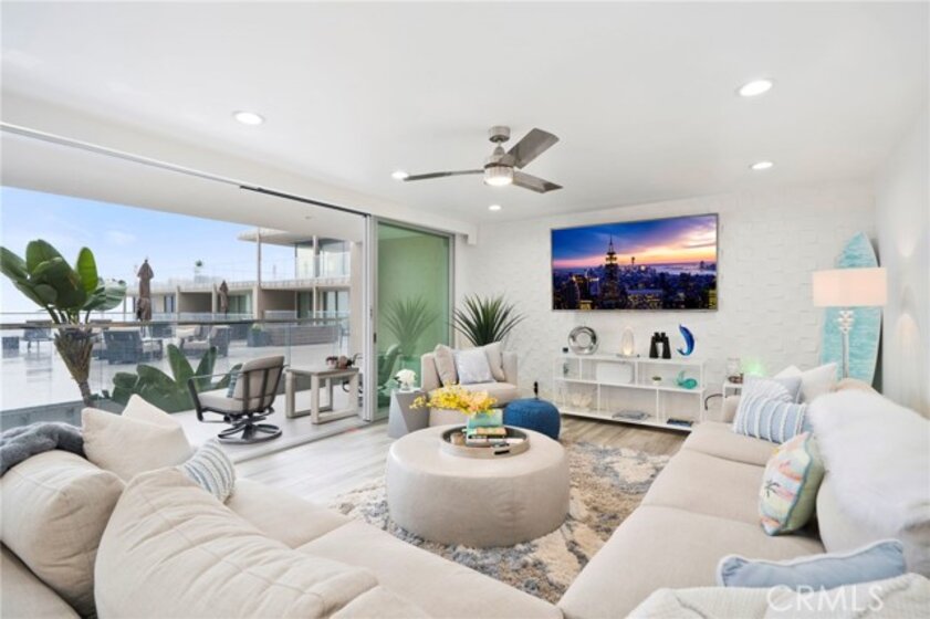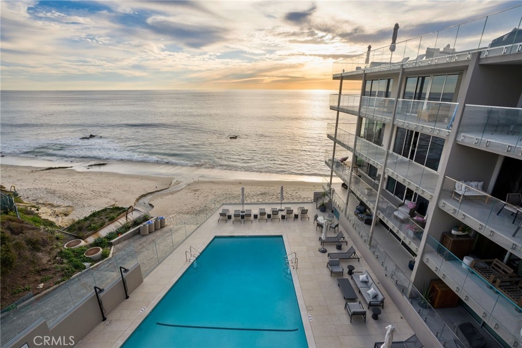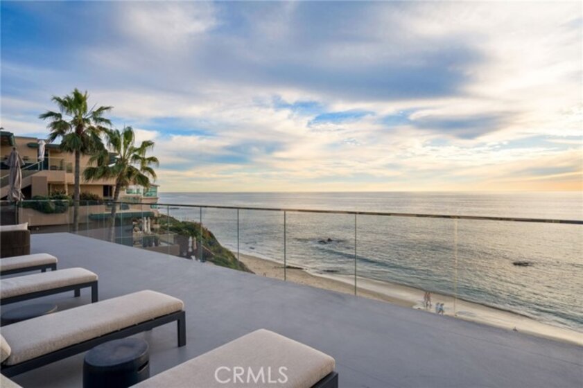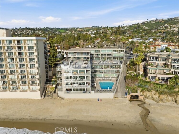 Perfectly positioned on the sand in the heart of Laguna Beach, this beautifully remodeled coastal residence is located within Laguna Sands- a private, secure, gated oceanfront community that has recently undergone a comprehensive multi-million-dollar renovation. Designed to capture the essence of refined seaside living, the interior is filled with natural light and features floor-to-ceiling La Cantina sliders that open to coastal breezes and soothing ocean sounds. Elegant wood-look porcelain tile flooring flows throughout the home, complemented by LED recessed lighting and ceiling fans that enhance the bright, airy ambiance. The gourmet kitchen is thoughtfully appointed with upgraded cabinetry, Italian porcelain countertops and backsplash, and a full suite of stainless steel appliances, ideal for both everyday living and entertaining. The spacious primary suite offers mirrored wardrobe doors with custom closet systems, while the highly upgraded, spa-inspired primary bathroom features a large walk-in shower and dual vanity sinks. The guest bathroom is equally well designed, offering a tub/shower combination, dual sinks, and a convenient stackable washer and dryer. A well-proportioned second bedroom provides a welcoming retreat for guests or flexible living space. In addition to refreshing coastal breezes, approved, permit-ready plans are available for the installation of air conditioning, should the next owner desire. Residents of Laguna Sands enjoy exceptional amenities including direct beach access, a newly renovated oceanfront swimming pool, and two expansive community terrace decks offering sweeping coastline views. Unit #47 features direct access to one of these beautifully updated outdoor spaces, complete with lounge furnishings, barbecues, and fire pits, perfect for entertaining or relaxing by the sea. The building offers elevator access to the parking garage and exceptional walkability to Laguna Beach’s renowned shops, art galleries, and restaurants. A trolley stop located just outside the building provides convenient access to downtown and surrounding areas, while the iconic Surf & Sand Resort is located immediately next door. This is coastal luxury living at its finest, where oceanfront serenity meets the vibrant Laguna Beach lifestyle. Furnishings may be included, offering a move-in-ready, turnkey opportunity.