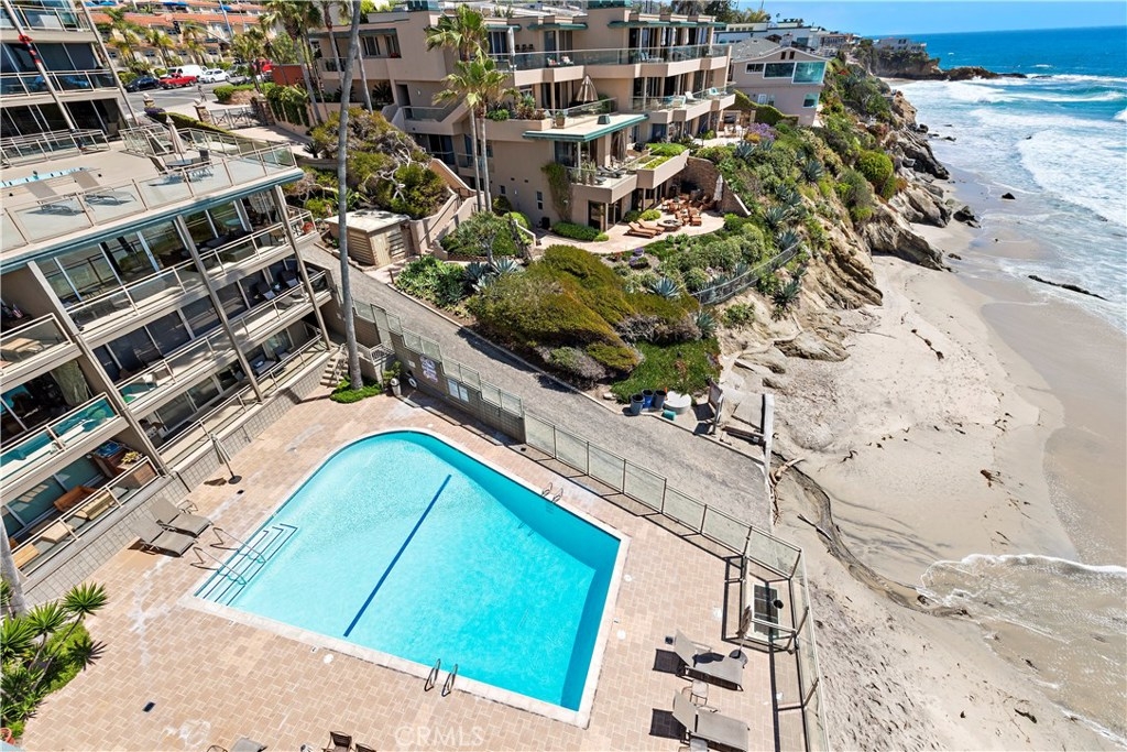 OCEAN FRONT PENTHOUSE with SAND AND WHITE WATER OCEAN VIEWS! Walls of glass in both the living room and bedroom open to the terrace where you can relax and take in the amazing view! Centrally located next to the Surf and Sand Hotel in the highly sought after gated community of Laguna Sands, this condo is the perfect getaway at the beach! Enjoy the amenities of the oceanfront heated pool, direct beach access and two community decks. The view and sounds of the ocean can be experienced from your bed! This unit has gated parking in the subterranean parking garage with one assigned parking space. The unit has indoor laundry! Property has elevator~ Walking distance to various restaurants, shops and galleries. Enjoy beach front living at it's best in the heart of Laguna Beach!