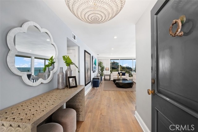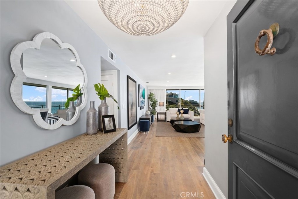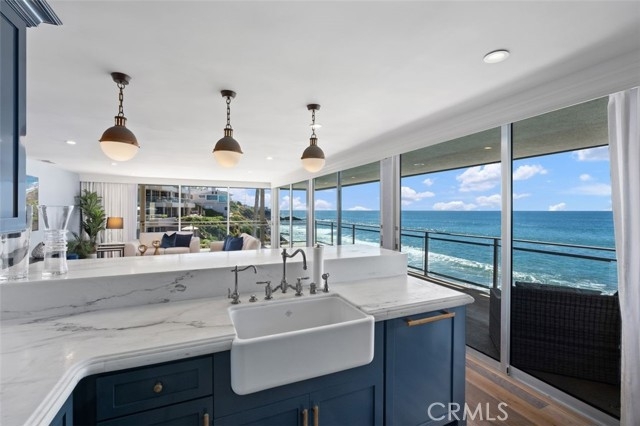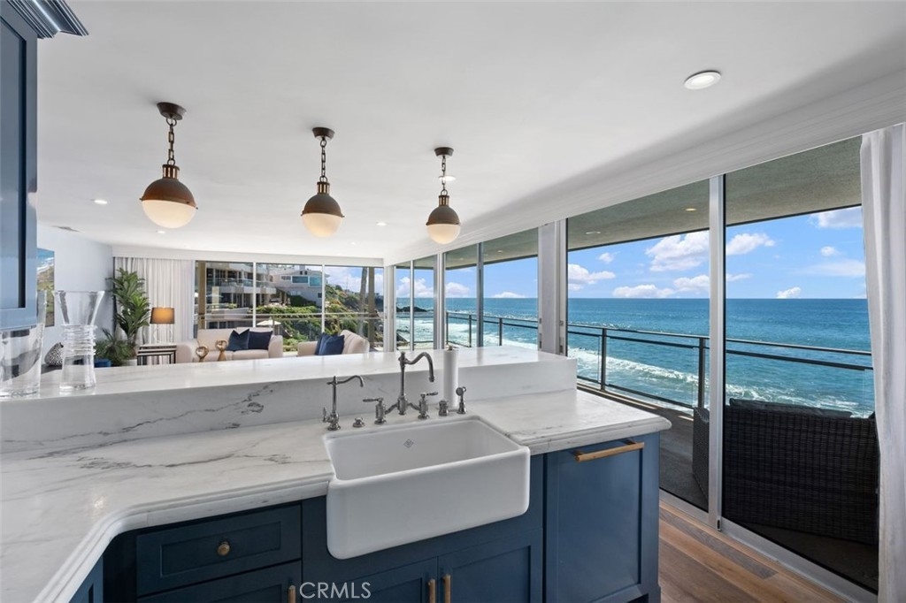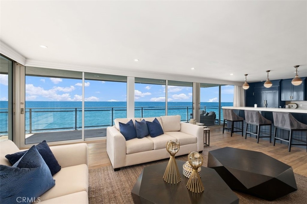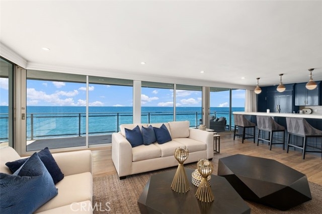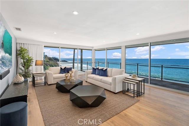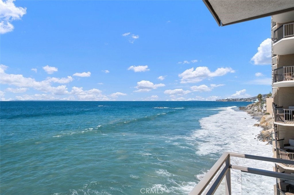 Presenting one of the premier front-row ocean views in all of Laguna Beach. Welcome to 1585 S. Coast Hwy Unit 31. A pristine 3 bedroom 2 bathroom condominium sitting on the ocean front in the Laguna Sands complex. This home is perfectly nestled between The Village and Woods Cove neighborhoods, and offers access to anything and everything that people come to Laguna for. Truly one of a kind, this ultimate beachfront location offers 210 degrees of spectacular direct ocean frontage and not one step, stair or elevator from the parking garage to your bed. Feel crashing waves from the huge wrap around deck overlooking Bluebird Beach. Just short distances to some of the best Laguna offerings - restaurants, shops, nightlife and more. Laguna Sands is highly secure and private (with 24 hour security and additional security doors) and allows a long list of ‘perks’ of luxury oceanfront living; private access to Bluebird Beach & private pool. The kitchen, living room, and dining area open up to panoramic ocean and coastline views, allowing for plentiful light. The large primary bedroom (with an ensuite bathroom) also boasts an incredible ocean view. An additional rare benefit of this unit: there are two assigned parking spaces (each with its own storage closet) with no stairs to unit entry. One parking space is already fitted with a charging outlet for an electric vehicle! Enjoy glorious sunrises while watching surfers brave the majestic rock outcropping from your oversized master bedroom, and toast to the sunset over Catalina Island in the evening. This is luxury beach living at its finest. Condominiums in this enviable, highly desirable oceanfront community are rare. You don't want to miss out on this special ocean front gem!