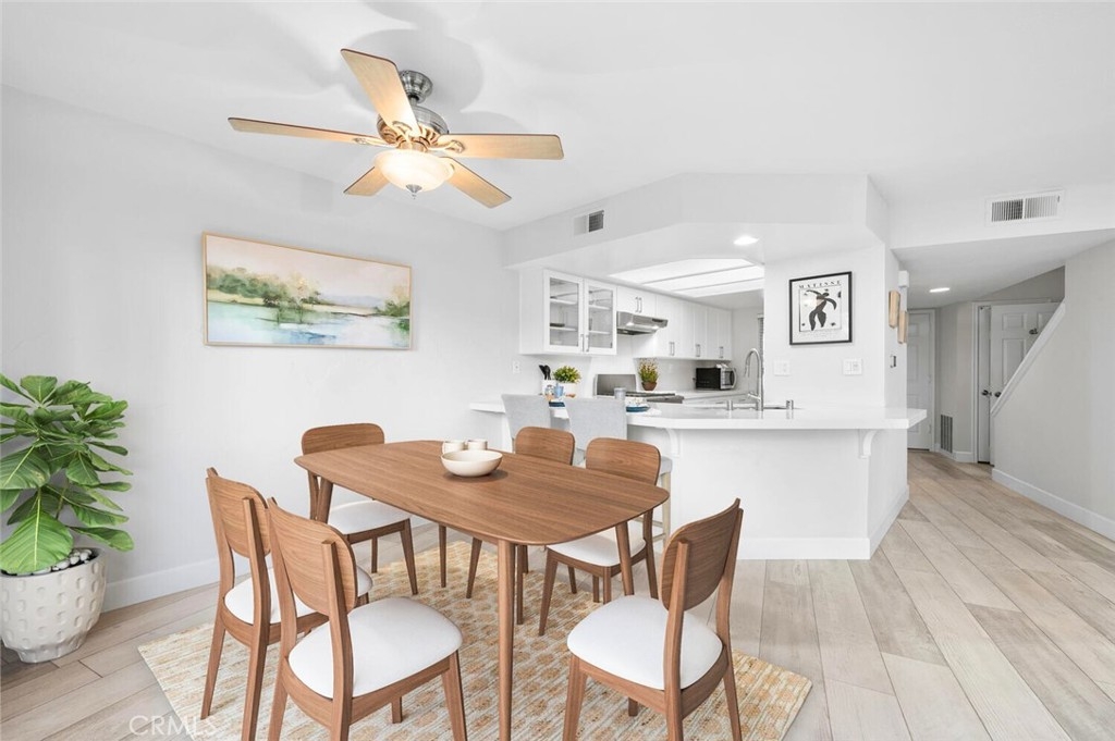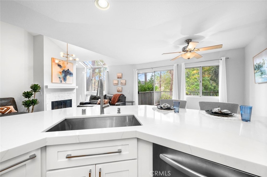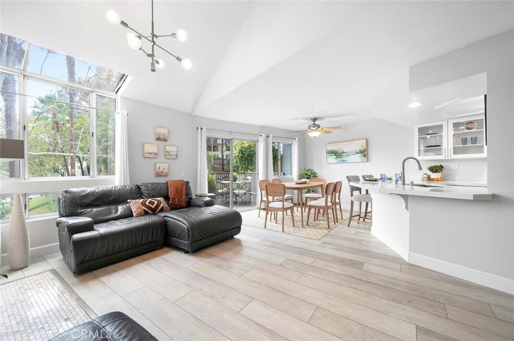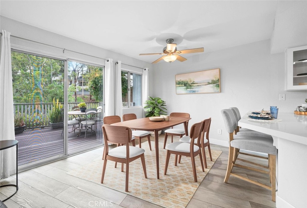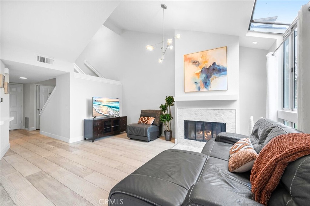 Nestled in the serene and highly coveted community of The Terraces in Laguna Beach this beautifully remodeled townhome offers the perfect blend of modern sophistication and relaxed coastal living. Just 10 minutes from downtown, this light-filled home boasts soaring vaulted ceilings, an open-concept layout, and quality finishes throughout. The remodeled kitchen features custom white cabinetry, quartz countertops, stainless steel appliances, and an expanded breakfast bar with seating that seamlessly connects to the dining and living areas. The living room, complete with a cozy fireplace and custom marble mosaic surround, opens onto a large, enclosed deck surrounded by mature trees, creating a private retreat with beautiful hillside views. Upstairs, you’ll find two generous en-suite bedrooms with vaulted ceilings, ample closet space, and beautifully upgraded bathrooms with quartz vanities. Additional upgrades include luxury vinyl plank flooring, custom paint and mirrored closet doors, and a full-home re-pipe completed in 2020. This home offers exceptional convenience with two single-car garages—one attached with direct access and an additional detached garage for extra storage. Residents of The Terraces enjoy resort-style amenities, including two pools, a spa, outdoor cooking area, and scenic walking trails. Located within the award-winning Laguna Beach School District and just minutes from world-class beaches, art festivals, hiking trails, fine dining, and easy access to the 73, 405, and 5 freeways.