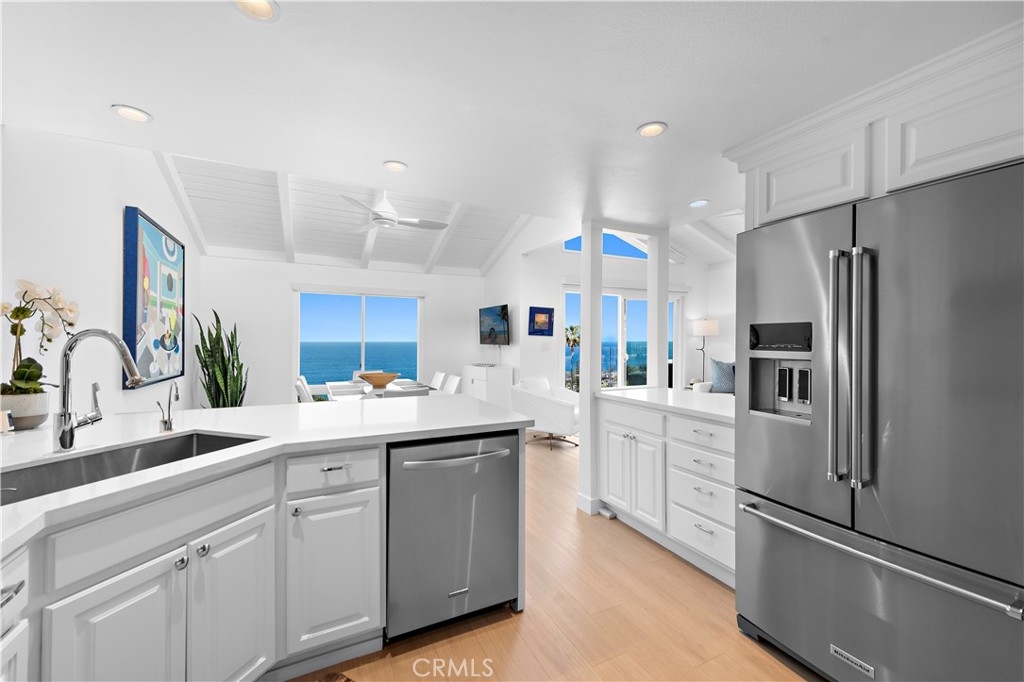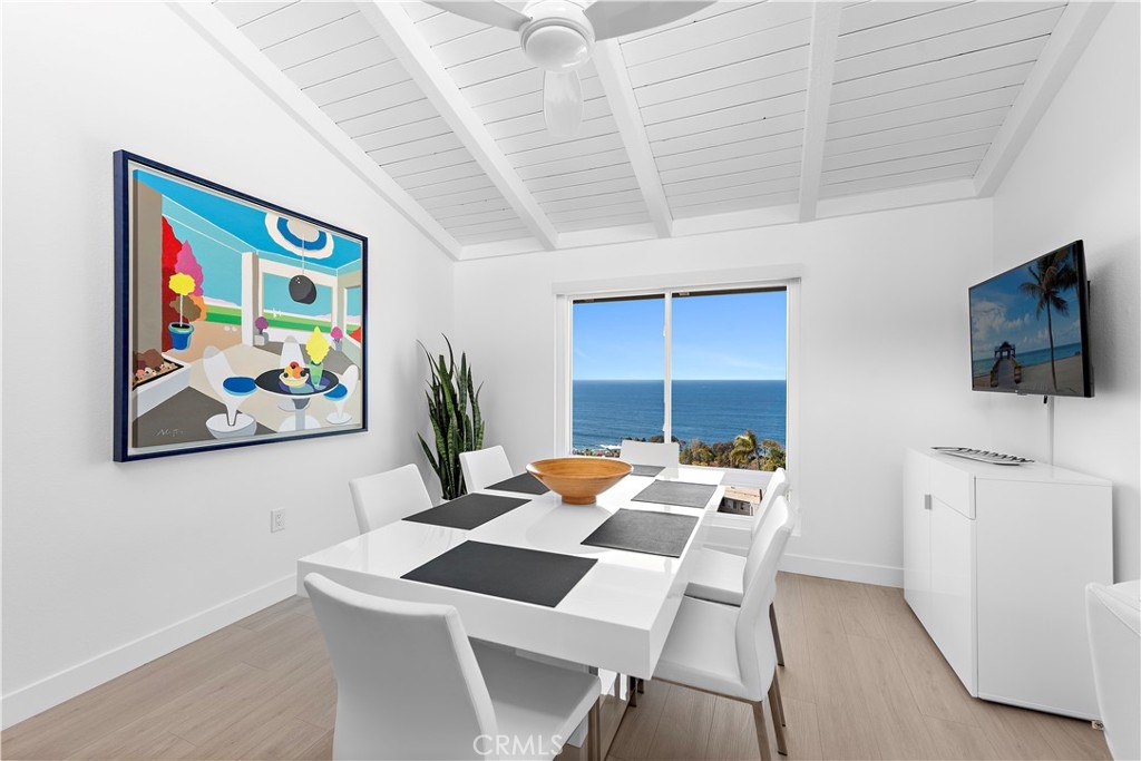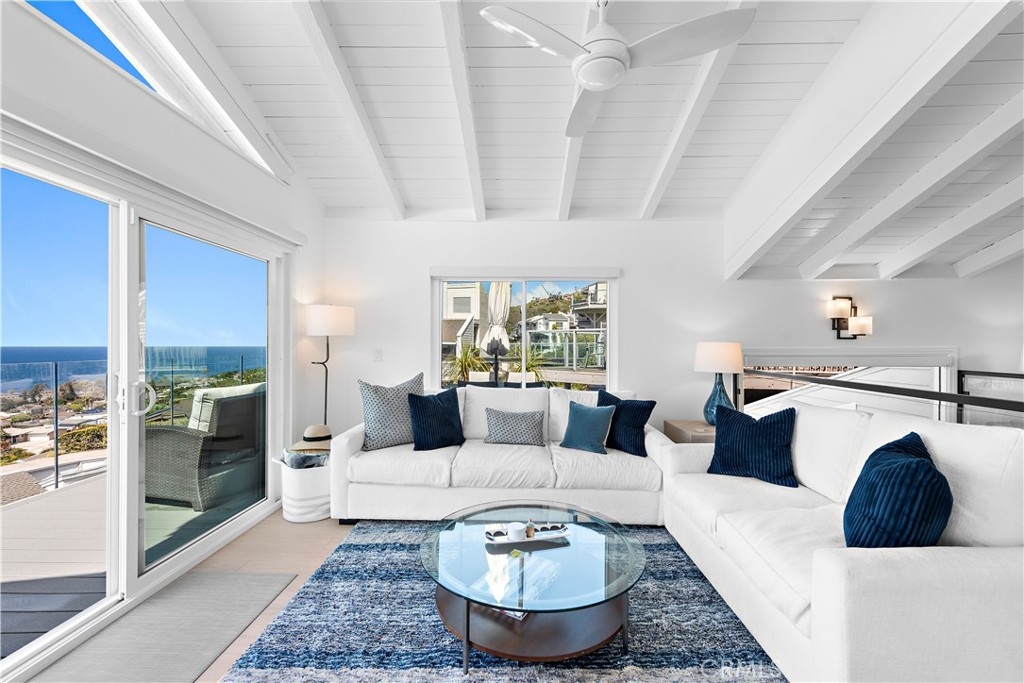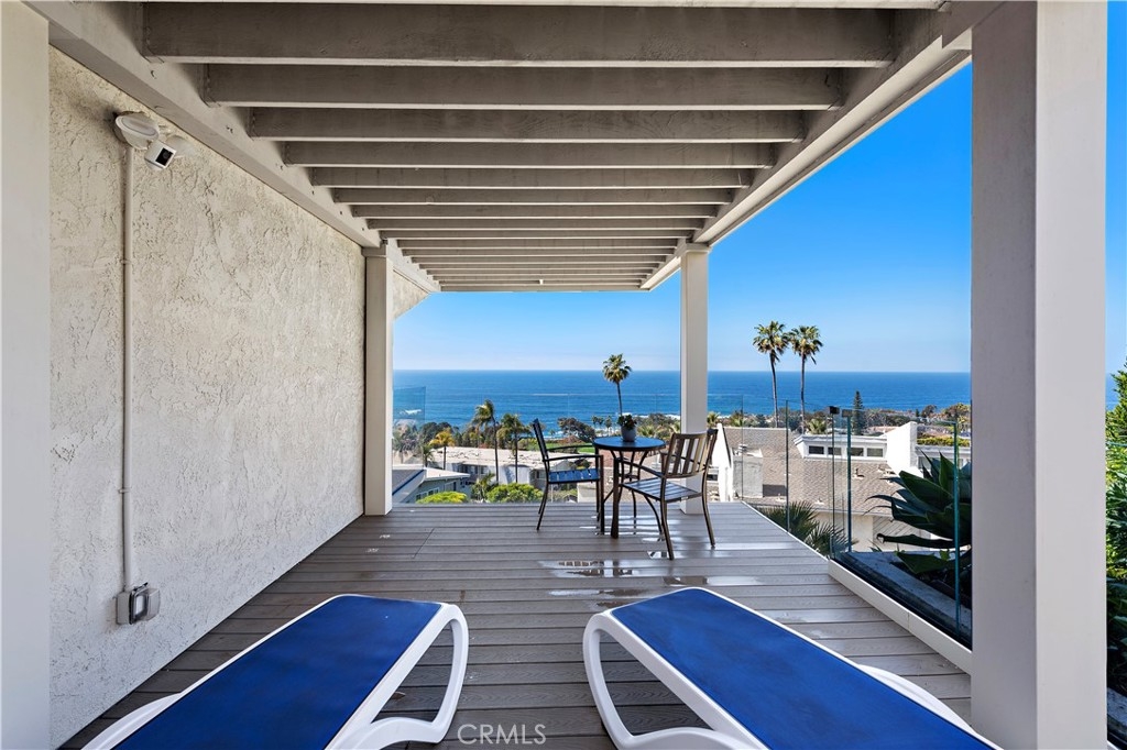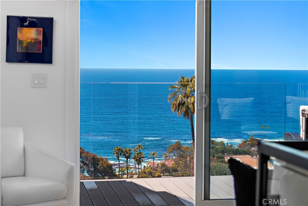 Welcome to your dream coastal retreat at 21657 Ocean Vista Dr, nestled in the picturesque hills of Laguna Beach, just a short stroll to some of Laguna's world-renowned beaches. Located within a gated community, this exquisite residence offers breathtaking 180° unobstructed panoramic views of the ocean, white water, sandy shores, and rugged cliffs, from every room. Experience incredible sunsets, with spectacular views of Catalina Island and the captivating ocean landscape. Completely remodeled in 2020-21, this home epitomizes luxurious living in one of Southern California's most coveted locations. As you step inside, you'll be captivated by this rare corner property featuring three bedrooms and an open floor plan that seamlessly blends indoor and outdoor living. The spacious living area is filled with natural light, while large sliding doors and windows perfectly frame the stunning ocean vistas. Enjoy cozy evenings by the fireplace, or step out onto the expansive wraparound deck to savor magnificent sunsets and twinkling coastal lights. Both the living area and all three bedrooms feature extended and upgraded decks finished with all glass railings. The upper deck wraps around the corner, offering ample space for entertaining, seating, and a large outdoor dining table. The kitchen is a chef's delight, equipped with stainless steel appliances, quartz countertops, custom cabinetry, a generous walk-in pantry, and an extended counter for seating—perfect for entertaining. The dining area offers an elegant space for hosting family and friends while enjoying the picturesque views. Retreat to the generous primary suite, a serene oasis complete with an ensuite bathroom, built-in closet, and private balcony overlooking the ocean. Two additional bedrooms provide ample space for guests or a home office, each with sliding doors to panoramic ocean views and private decks. Situated on a quiet cul-de-sac at the top of the hillside, just a few blocks from the Montage Resort, The Ranch, and Starfish—all local favorites. It’s also in close proximity to Laguna Beach's world-renowned beaches, shopping, art galleries, and dining. This home offers the perfect blend of tranquility and convenience. This is coastal paradise. Explore the “2021 Remodel and Amenities” for much more.