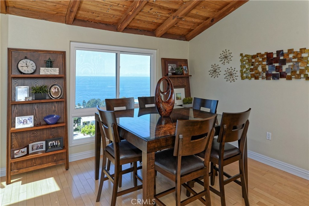 Unobstructed tremendous sit-down panoramic whitewater and ocean views from all rooms and viewing decks. Enjoy some of the best views in all of Laguna Beach and a perfect sun exposure that fills the home with natural light. Surrounded by nature, this home boasts the ultimate location for scenic ocean views and idyllic tranquility. Fall asleep every night to the sound of waves. In an exclusive gated community, this spacious two-level townhouse offers approximately 1,700 square feet of living space. The floor plan features a light and bright contemporary design with three bedrooms and three bathrooms. The upper level entrance leads you to the living room, family room, dining room, immense wrap-around ocean viewing deck, half-bathroom, and roomy gourmet kitchen with stainless steel appliances, granite counters, custom cabinets and a pantry. The lower level has three bedrooms all attached to ocean viewing decks, two bathrooms, and a laundry room. The expansive master bedroom has four closets and an oversized en-suite bathroom. Amenities include vaulted ceilings, clerestory windows, hardwood floors, fireplace, subterranean garage parking with storage cabinets, and swimming pool. Phenomenal South Laguna location close to shopping, restaurants, Aliso Beach, the Montage oceanfront hotel, and The Ranch resort with a public golf course. This home is the perfect vacation destination.