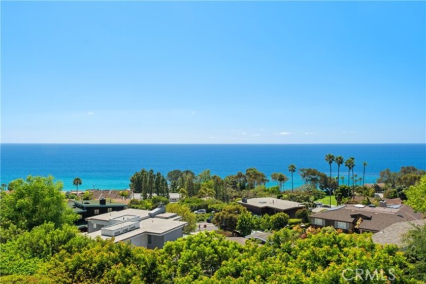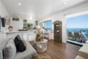 Perched above the Pacific Ocean, this coastal residence delivers sweep-the-horizon views from the living area and an ocean-facing kitchen window—plus the indoor/outdoor flow everyone craves. The open great room features recessed lighting, warm wood floors, and a large slider that extends daily living onto a view deck with glass railing—ideal for sunset dinners, morning coffee, and coastal breezes. Your patio is exclusive-use and not shared like units next door. The kitchen pairs crisp cabinetry with stone counters and a striking backsplash, with bar seating positioned to keep the ocean in sight. Updated bath finishes include a modern vanity and a glass-enclosed tub/shower with statement mosaic detail. Partial repipe completed recently. The bedroom layout includes a serene primary retreat and a flexible secondary room well-suited for guests, an office, or a personal library. Enjoy the community setting at Ocean Vista, with a sun-splashed pool, an Open-Air Pavilion area, and a prime coastal location overlooking the world-famous Montage Resort!