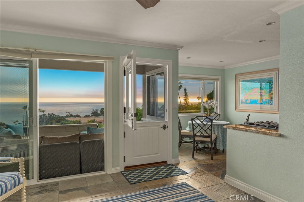 Welcome to this elegant, upgraded single-level condo in Laguna Beach, where you will enjoy breathtaking, 180-degree panoramic views of the coastline, sparkling ocean, and Catalina. This is an incredible opportunity to own a home that has undergone extensive remodeling throughout, including granite countertops and high-end appliances in the kitchen, along with upgraded slate flooring in the living area to lend a modern style and enhance the open floorplan. Bask in the beauty of spectacular sunsets from the comfort of your living room or the enclosed patio, which is connected by sliding doors and a Dutch door to further embrace the indoor-outdoor feeling. For opportunity seekers, this property is a dream come true. With a land lease of only $22/month, this home is an unparalleled value in a highly desirable location. Enjoy panoramic ocean views from the HOA’s resort-style community pool, which features a clubhouse, outside entertainment area, lounge chairs, and casual seating — perfect for a relaxing day outdoors. Just a short distance to downtown and stunning beaches, this home is only three blocks from the award-winning Montage Resort and Treasure Island Beach, two blocks from world-class restaurants, and minutes from all of the rest of Laguna’s incredible amenities. Welcome to your personal paradise.