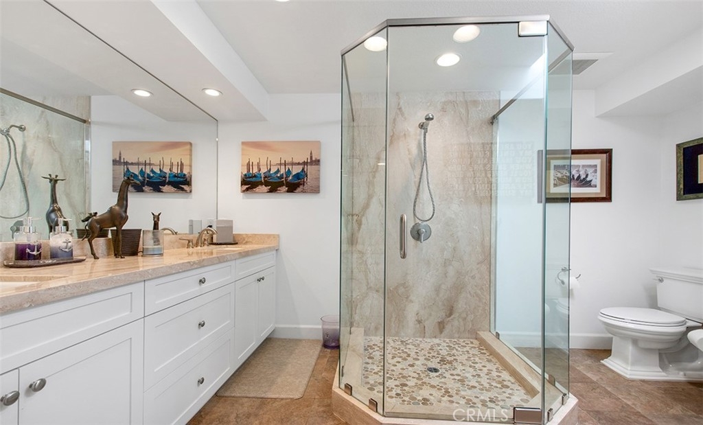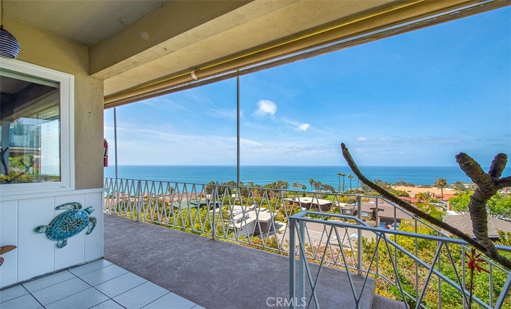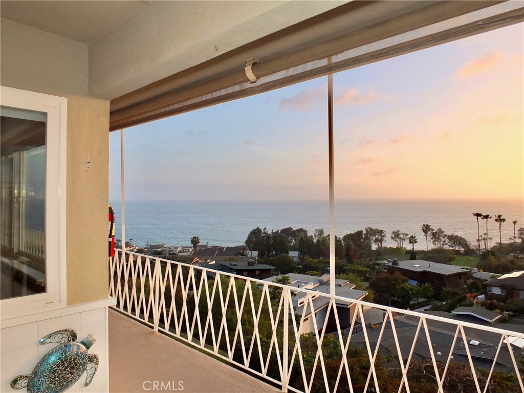 Incredible 180 degree ocean and coastline views with stunning Catalina sunsets from this extensively remodeled, top-floor, bright corner-unit nestled on a cul-de-sac above Treasure Island Beach and the Montage Resort. The unit features an open floor-plan, wood floors throughout, recessed lights, newer windows, custom cabinetry, tile and high-end touches. The kitchen was remodeled with new cabinets, granite countertops with full granite backsplash, stainless steel appliances, high-end finishes and fixtures. The bathroom has a large beautiful vanity with double sinks, skylight, full shower. On-site laundry facilities. Private 1-car garage with remote and storage. Currently used as a one bedroom and office/den and can easily be converted back to a two bedroom. Included in the monthly HOA fee is the $22.00 for the land lease. The HOA’s resort-style pool has incredible panoramic, ocean and Catalina views with lounge chairs, outside entrainment area, casual seating, dining areas, bar, & hot showers after a day in the sun.